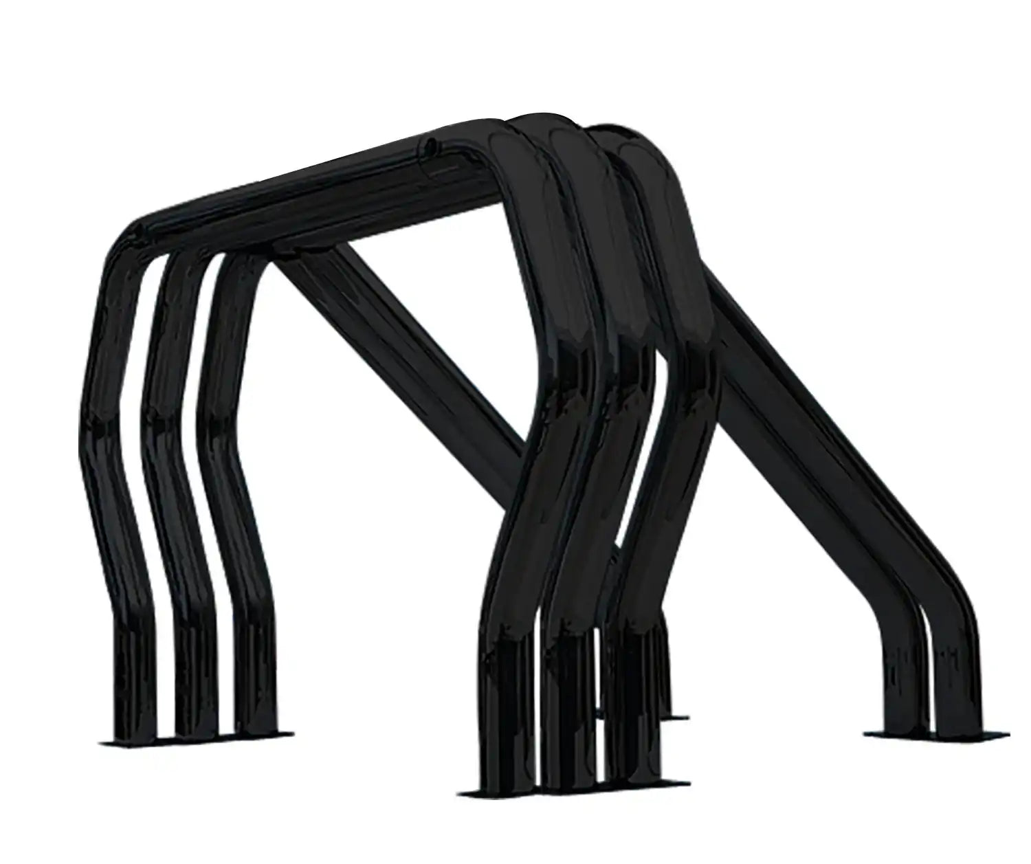 Truck Bed Bar Bed Bars Kit Tubular Triple-Double Bar Style Black Steel With Two Main "A" Bars/ One Main "B" Bar/ Two Kicker Sets Between Tire Wells