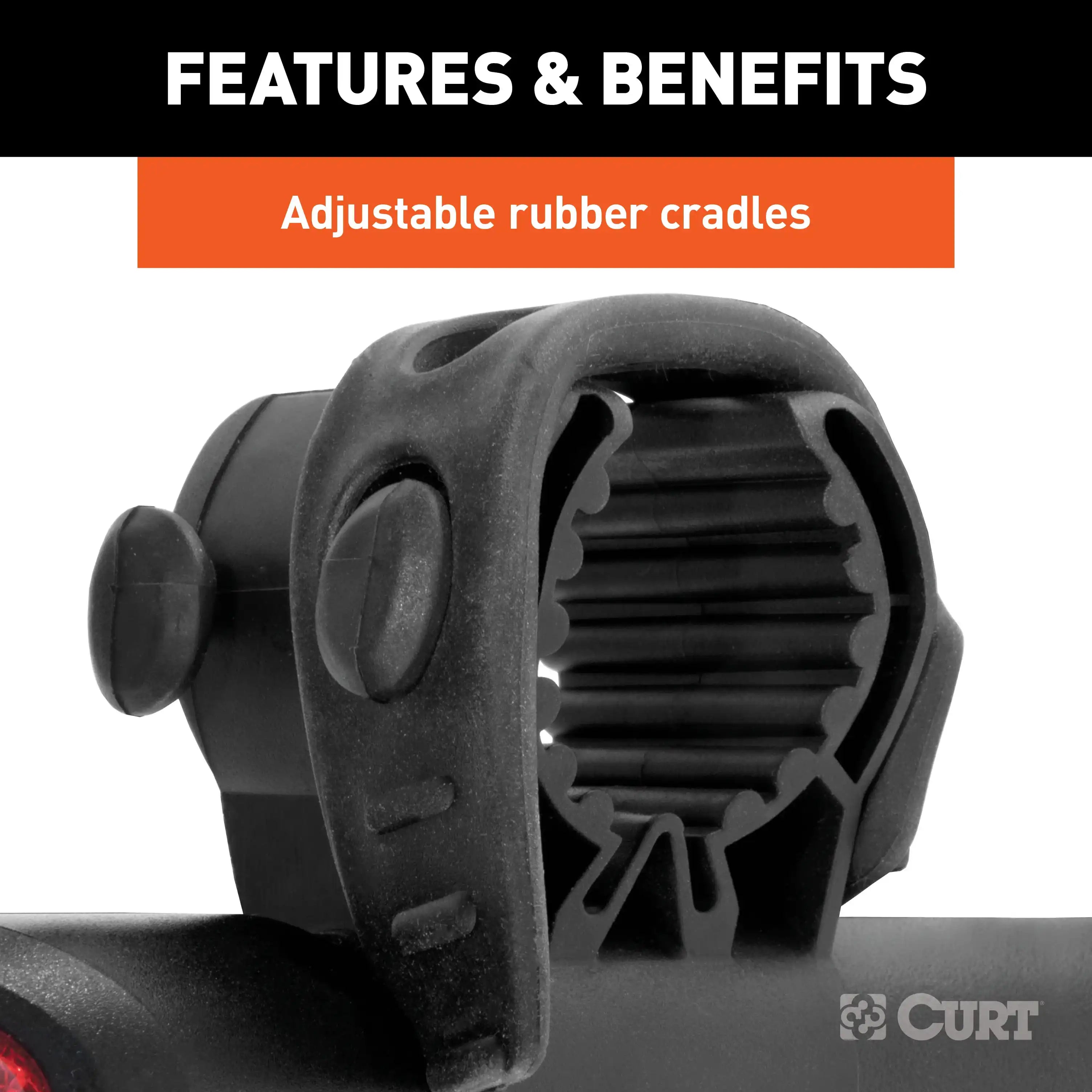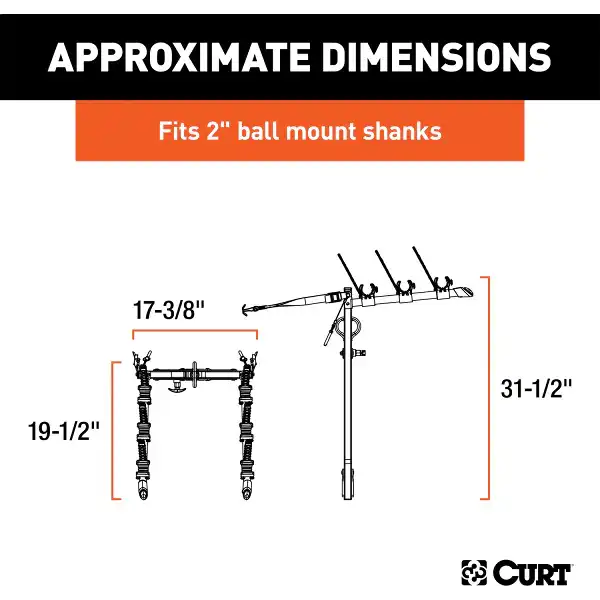 Camping on the lake shore, hunting in the Northwoods, biking down a mountain trail -- wherever you are headed this weekend and whichever toys you want to bring along for the ride, you can Bring It with CURT cargo management products. From our expanding line of bike racks to our new and improved cargo straps, we offer cargo management solutions to fit your unique lifestyle. The CURT clamp-on bike rack mounts onto a 2" x 2" ball mount shank by clamping over the top of it. This makes installation quick and simple and allows for full use of the hitch for towing a trailer. The clamp-on bike rack can hold up to three bikes at a time and features adjustable rubber cradles to prevent scratching the bike frames.