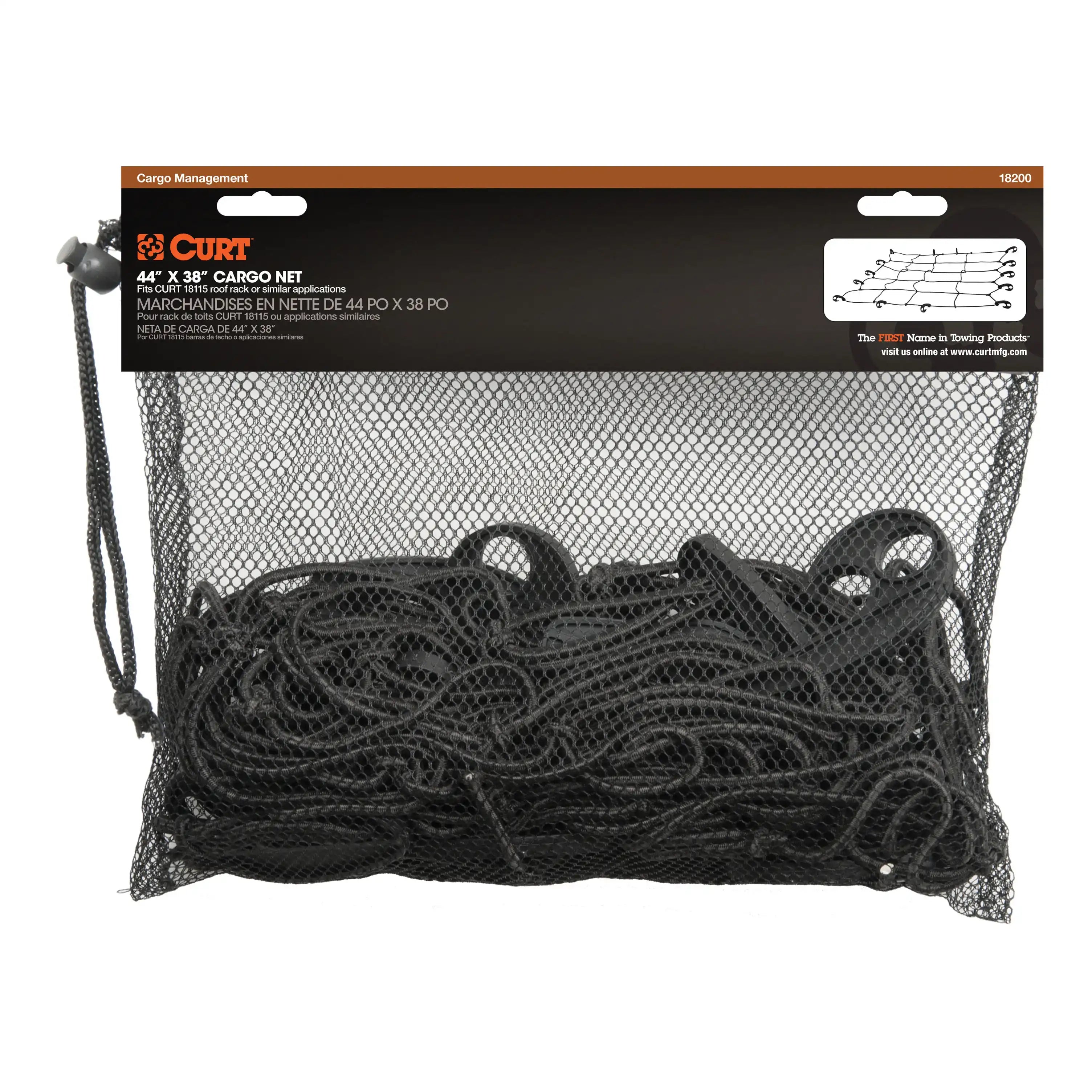 CURT 18200 - 44 x 38-Inch Elastic Cargo Net with Hooks for Roof Basket