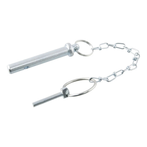 In our goal of being your best source for all things towing, the CURT line of trailer jacks is designed with care and manufactured with pride. CURT jacks are made with quality to promote the life and function of your trailer, and they come in several different styles to accommodate your needs, whether you are a frequenter of the boat landing, the campground, the racetrack or the farm. This replacement retainer pin is intended to fit CURT direct-weld square jacks #28570 and #28575. It inserts into the drop leg to keep it stored during travel and comes with a chain for convenient attachment.