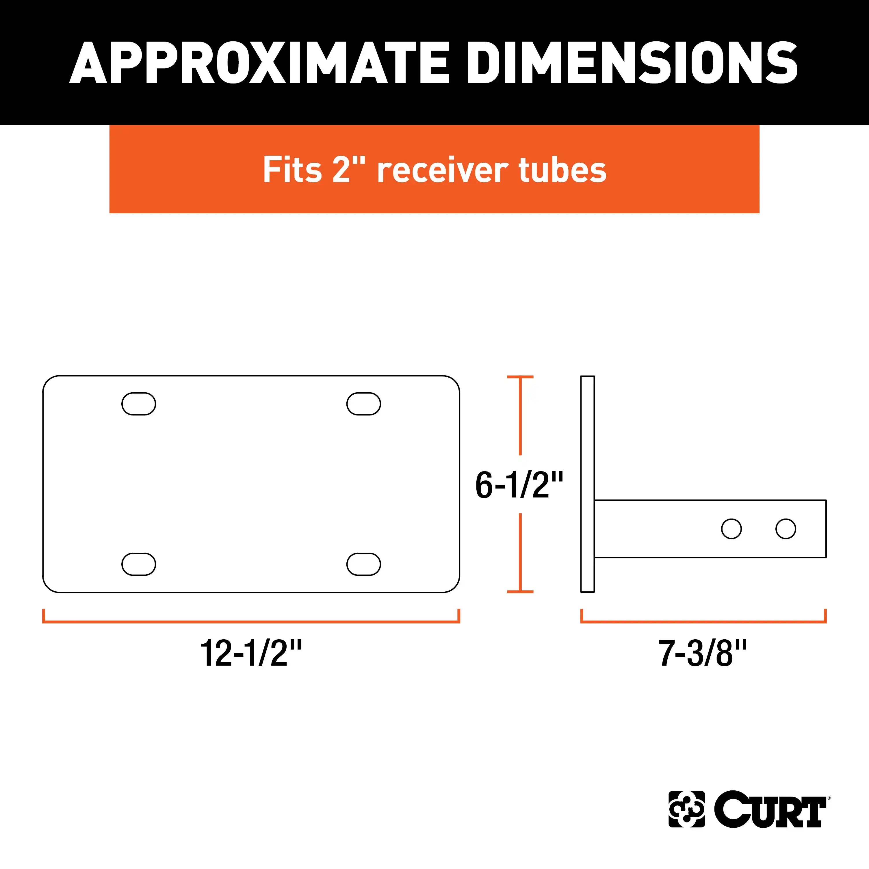 CURT front mount accessories are a unique line of towing accessories that maximize the usefulness of your tow vehicle and give you that added edge on and especially off the road. A CURT front mount trailer hitch is the first step in making your vehicle the ultimate towing machine, and with it comes a variety of towing possibilities you might not even know exist. It may not be everyone's accessory of choice, but for the off-roader, the CURT license plate holder is a must-have. When you soup up your truck with all the towing and off-roading bells and whistles, sometimes your license plate gets placed on the backburner. Make sure your license plate is in plain view with CURT's hitch-mounted license plate holder. This accessory is made from solid steel and easily attaches to your front or rear mount trailer hitch with a pin and clip. It is able to fit any 2" x 2" receiver tube opening.