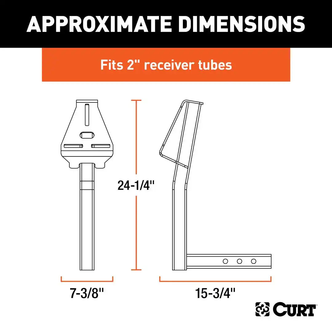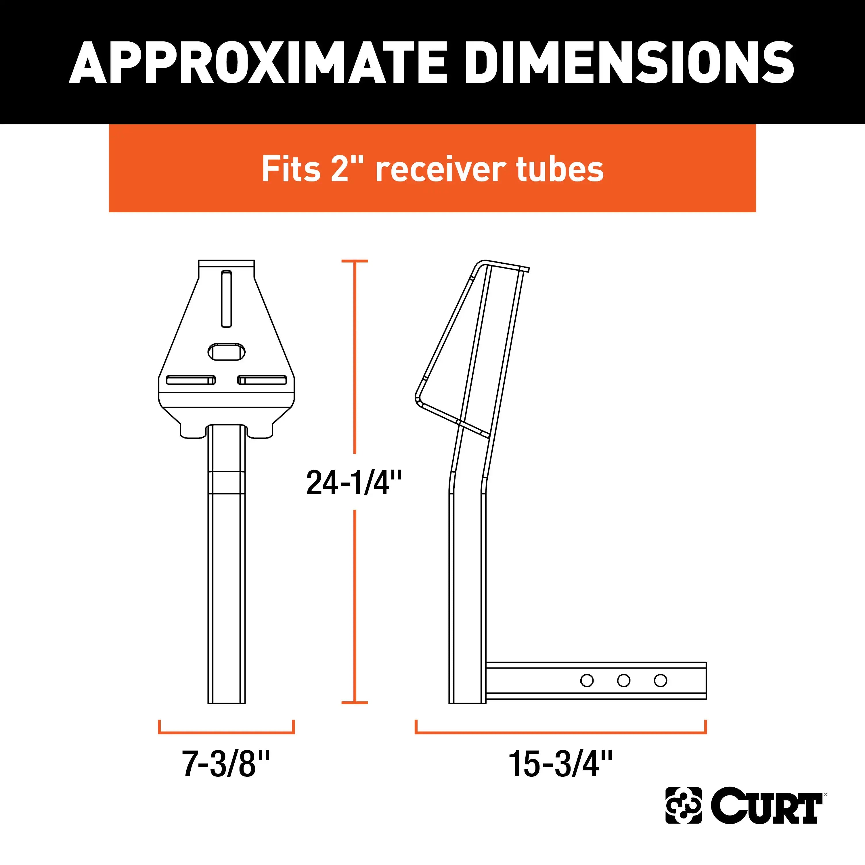 CURT front mount accessories are a unique line of towing accessories that maximize the usefulness of your tow vehicle and give you that added edge on and especially off the road. A CURT front mount trailer hitch is the first step in making your vehicle the ultimate towing machine, and with it comes a variety of towing possibilities you might not even know exist. The CURT spare tire mount inserts into the 2" x 2" receiver tube opening of your trailer hitch and allows you to attach a spare tire onto the front end or rear of your truck, van or SUV. It measures 24" from top to bottom and features multiple mounting holes on the shank to provide plenty of clearance for your bumper and the rear of your vehicle. The CURT spare tire mount is designed to mount onto a variety of vehicles and to accept a number of different wheel types. It is especially useful for off-roading situations and for creating a little extra cargo room inside your vehicle (NOTE: Mounting hardware for the spare tire is not included).
