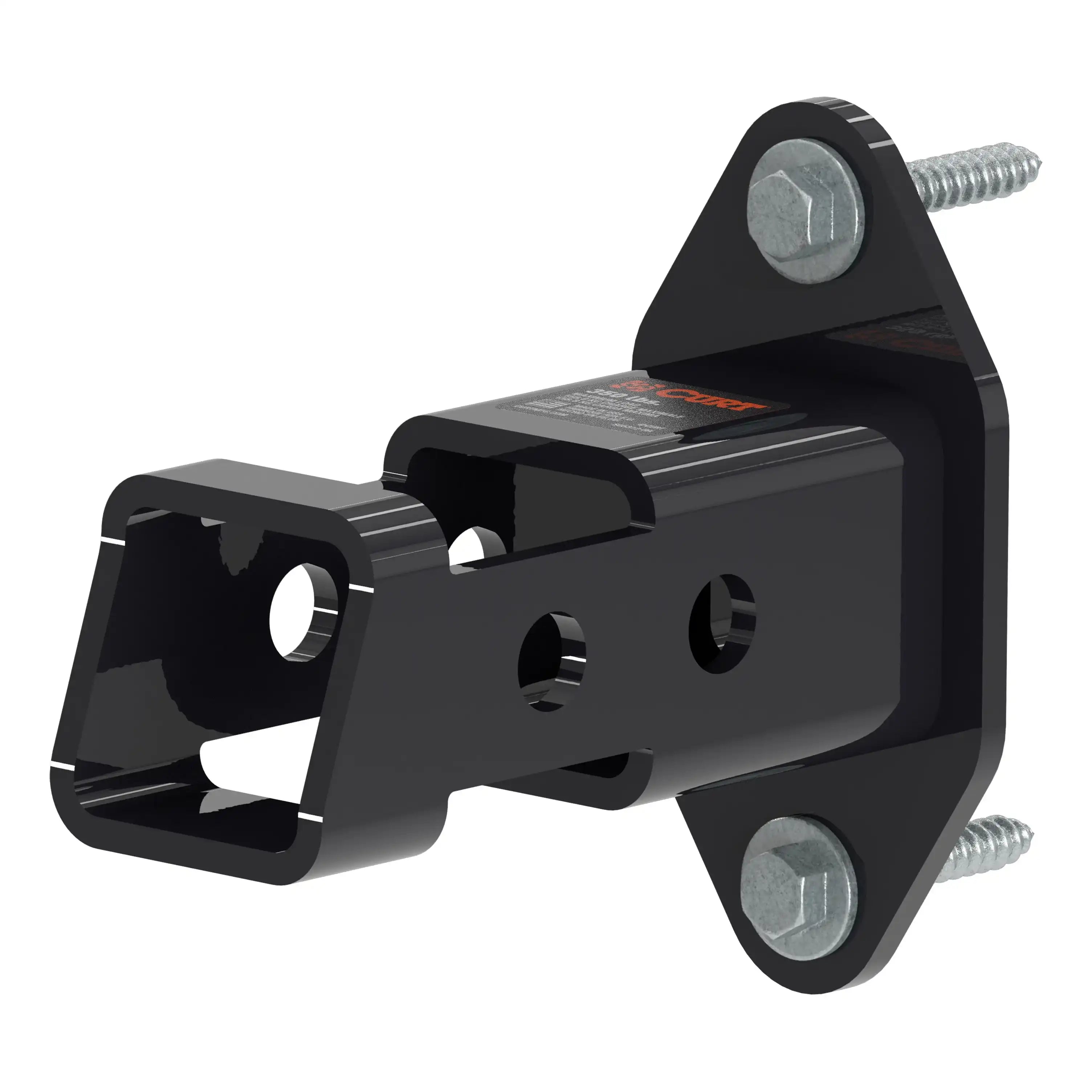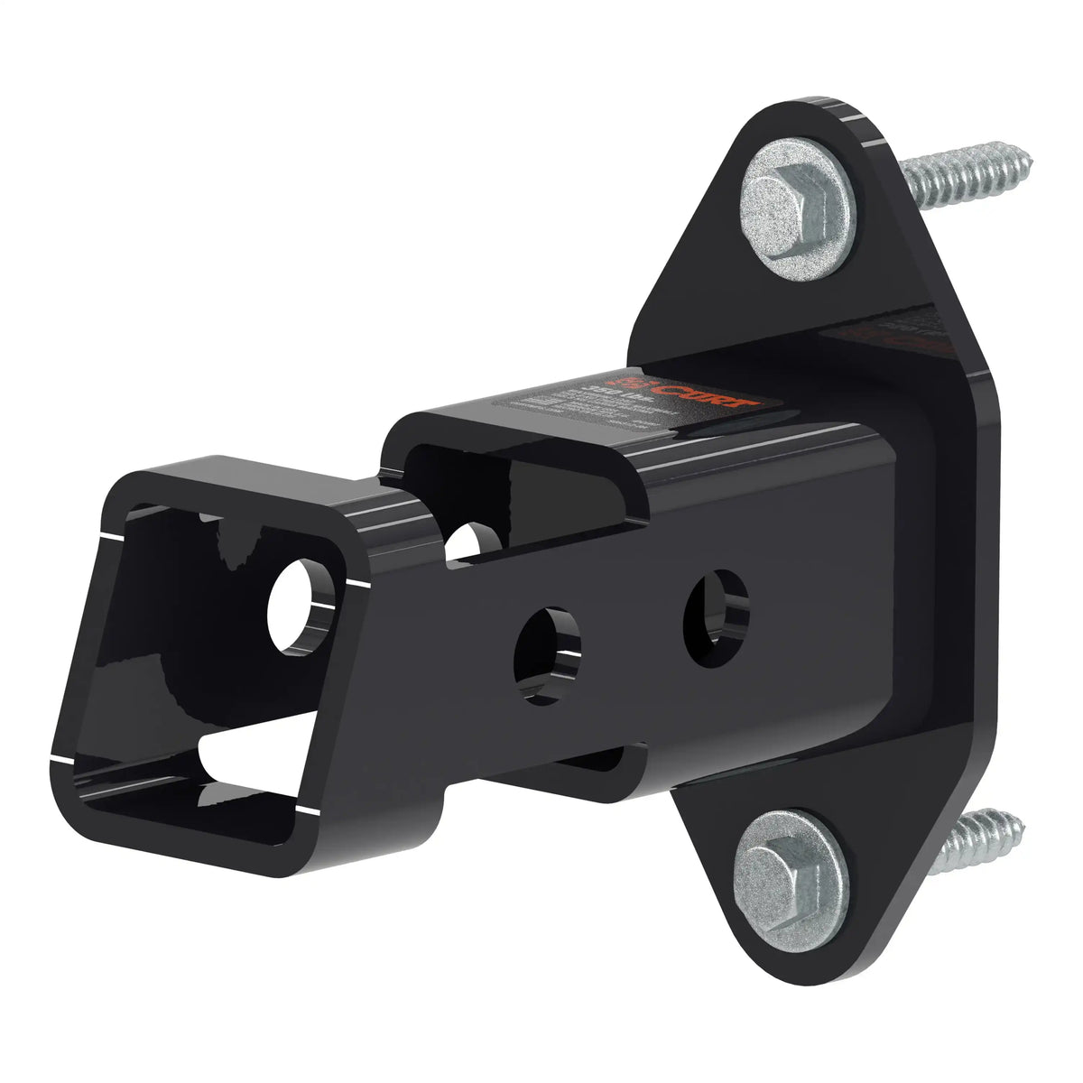 The CURT hitch accessory wall mount is the convenient, secure way to store your hitch accessories when not in use. It provides a versatile mounting point to hang all kinds of towing accessories on the wall, keeping them off the floor and keeping your garage, shed, shop or other storage space less cluttered. The wall mount easily bolts onto virtually any 2x4 stud, using the two included lag bolts. It provides a standard 2" receiver tube that allows accessories to be stored in either the horizontal or vertical position, whichever best meets your needs (hitch pin not included). The 2" receiver openings can accept 2" or 1-1/4" shanks, making this bracket ideal for a wide variety of ball mounts, cargo carriers, bike racks, tow bars, weight distribution hitches, winch mounts and more. The bracket is constructed from strong welded steel that's powder-coated for rust resistance, and it is tested for 350 pounds.