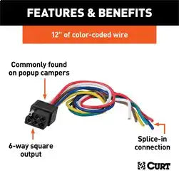 CURT 58035 - Vehicle-Side 6-Pin Square Trailer Wiring Harness with 12-Inch Wires