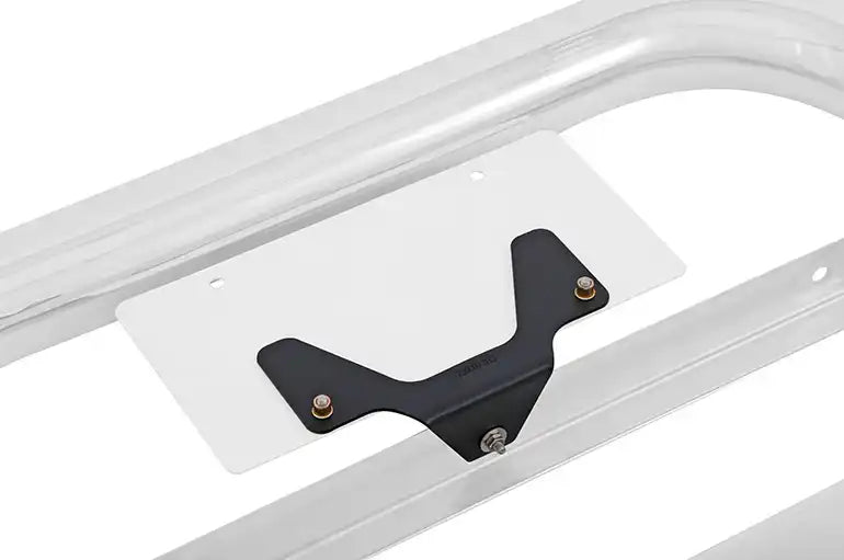 Dee Zee Bull Bar - License Plate Mount. Bull bars can block the license plate on some vehicles, use this bracket to move your license plate to a visible location. 2.5mm hot rolled steel protected by a black powder coat finish. Mounts to the Bull Bar with 6mm threaded inserts. Hardware included.
