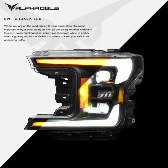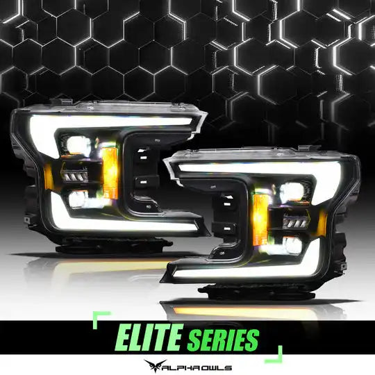 Alpha Owls 2018-2020 Ford F-150 Elite-Pro Series LED Projector Headlights (w/Black Bezel).
