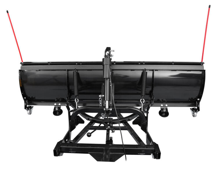The integrated electric winch lift system—paired with both wired and wireless remotes—lets you raise and lower the blade comfortably from inside your vehicle. The adjustable blade provides three manual angle positions, while included accessories such as caster wheels, skid shoes, blade markers, and a snow deflector ensure smoother operation and durability. Built for ease and convenience, the Enthuze SNOMG plow helps you work smarter all winter long.