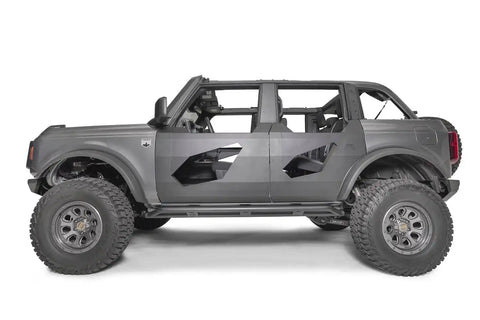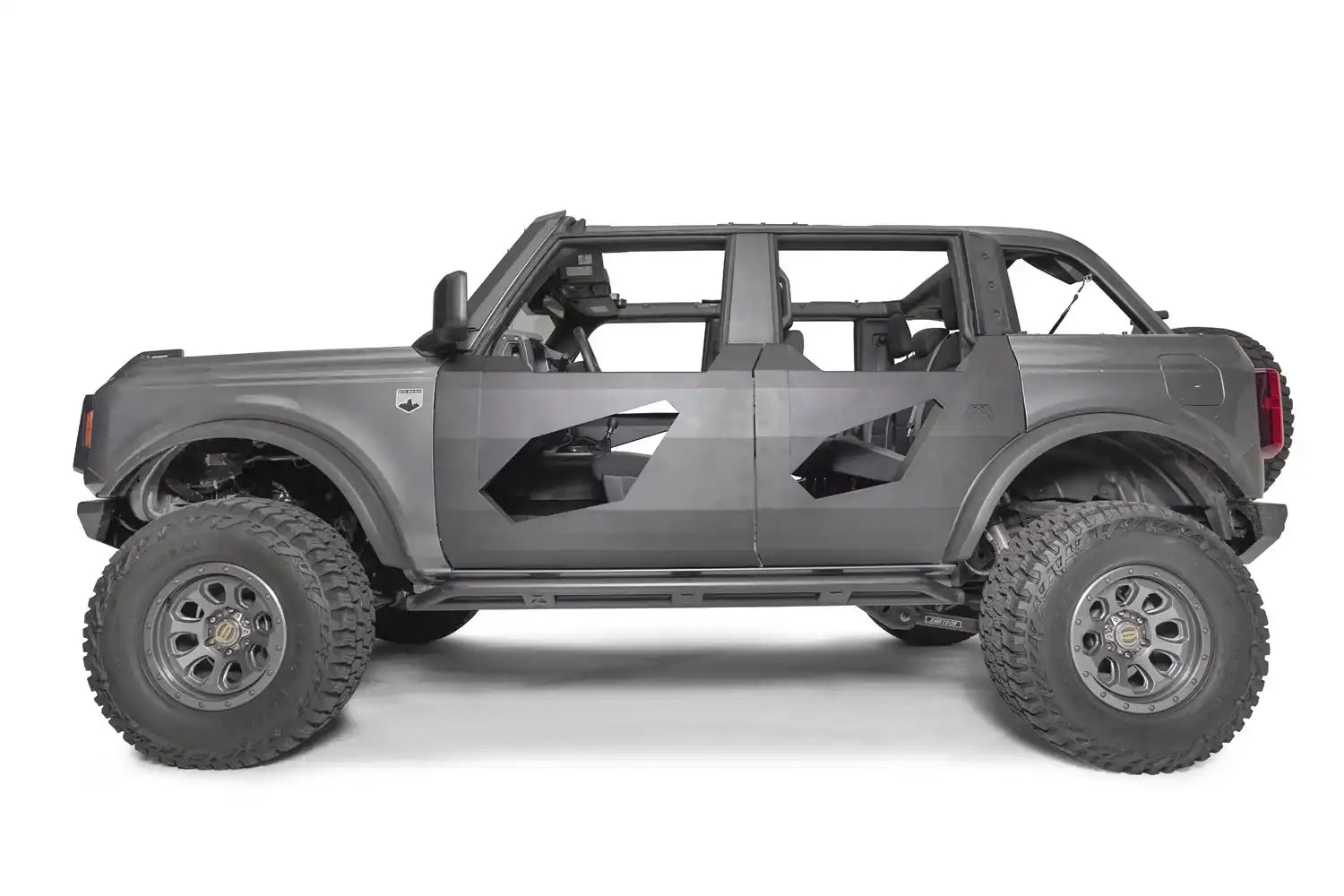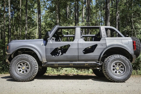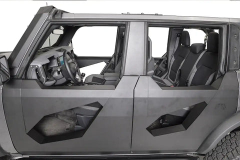 | Description_MKT | Enjoy the open air feeling when out on the trail or the streets during those summer days with the all new Fab Fours' Ford Bronco Trail Doors. Building on our reputation for the highest quality and design in the truck market, the Fab Fours' Ford Bronco Trail Doors focuses on strength and durability. Made from 12 gauge & 3/16th-inch US Steel and finished in our 2 stage matte black powder coat. These are the doors you've been waiting for! Fab Fours - Made in the USA! |