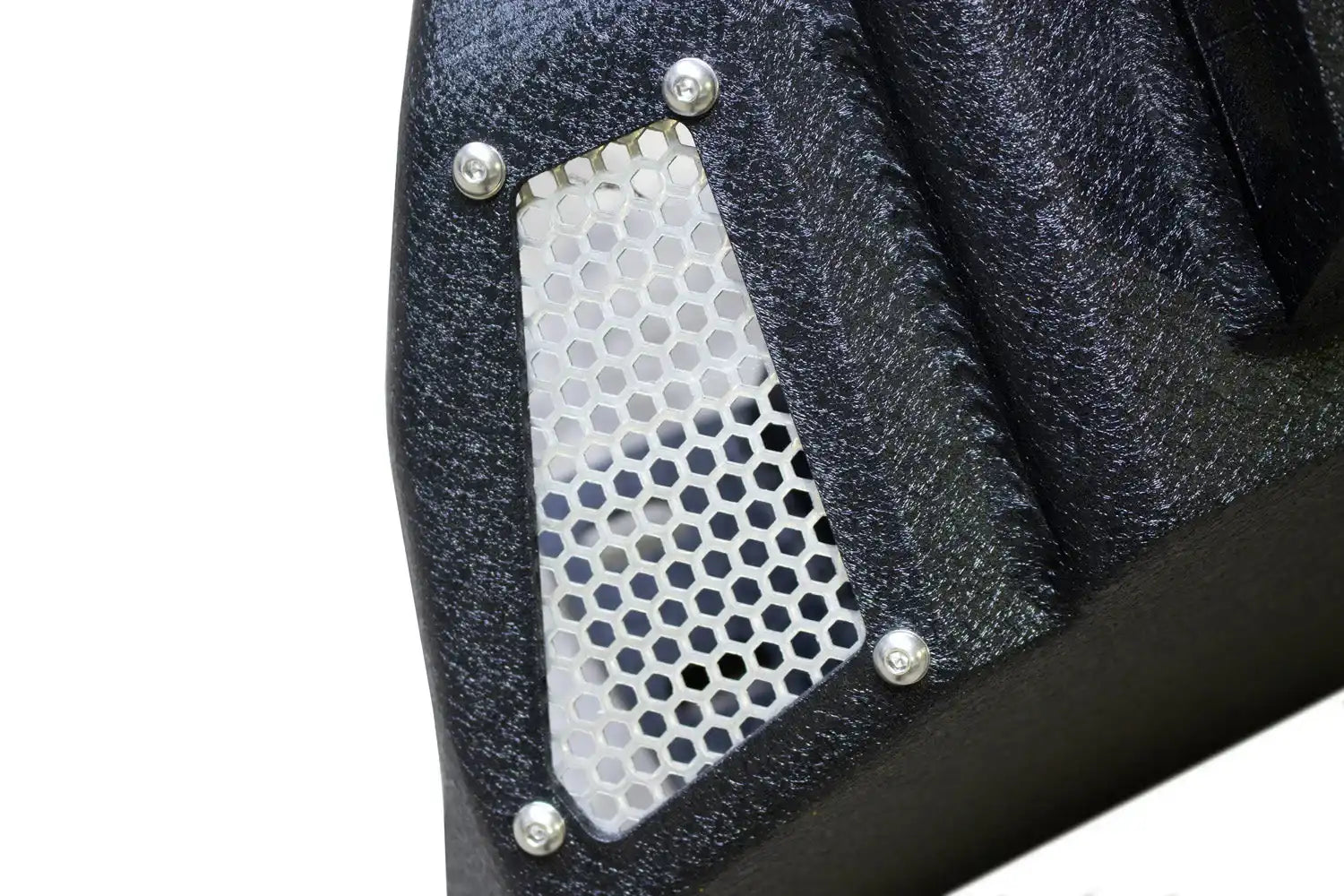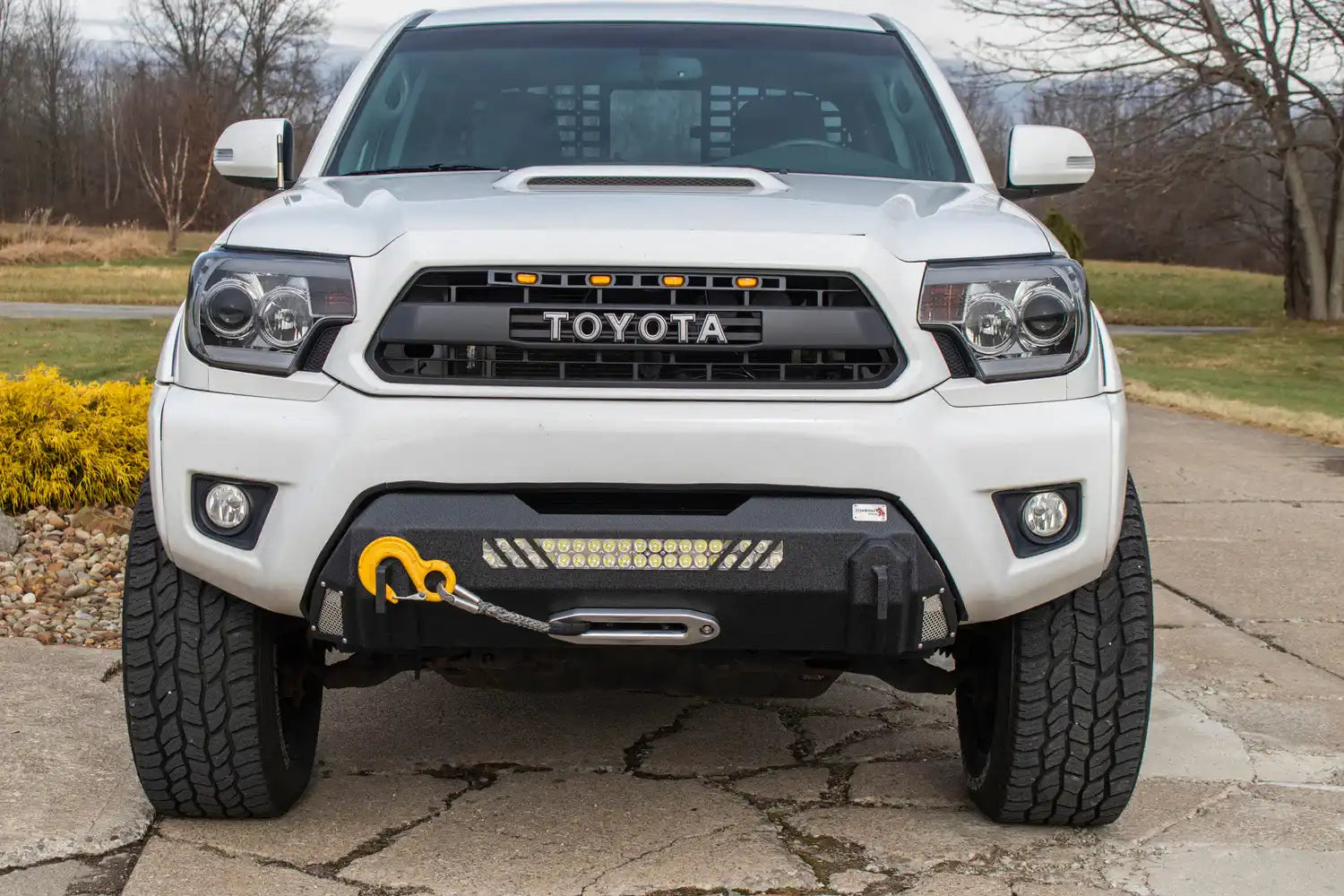 Bumper Direct Fit Mounting Hardware Included With Winch Mount For Up To 12000 Pound Winch With 2 D-Ring Mounts With 22 Inch Light Bar Cutout With Mesh Accents Powder Coated Black Steel