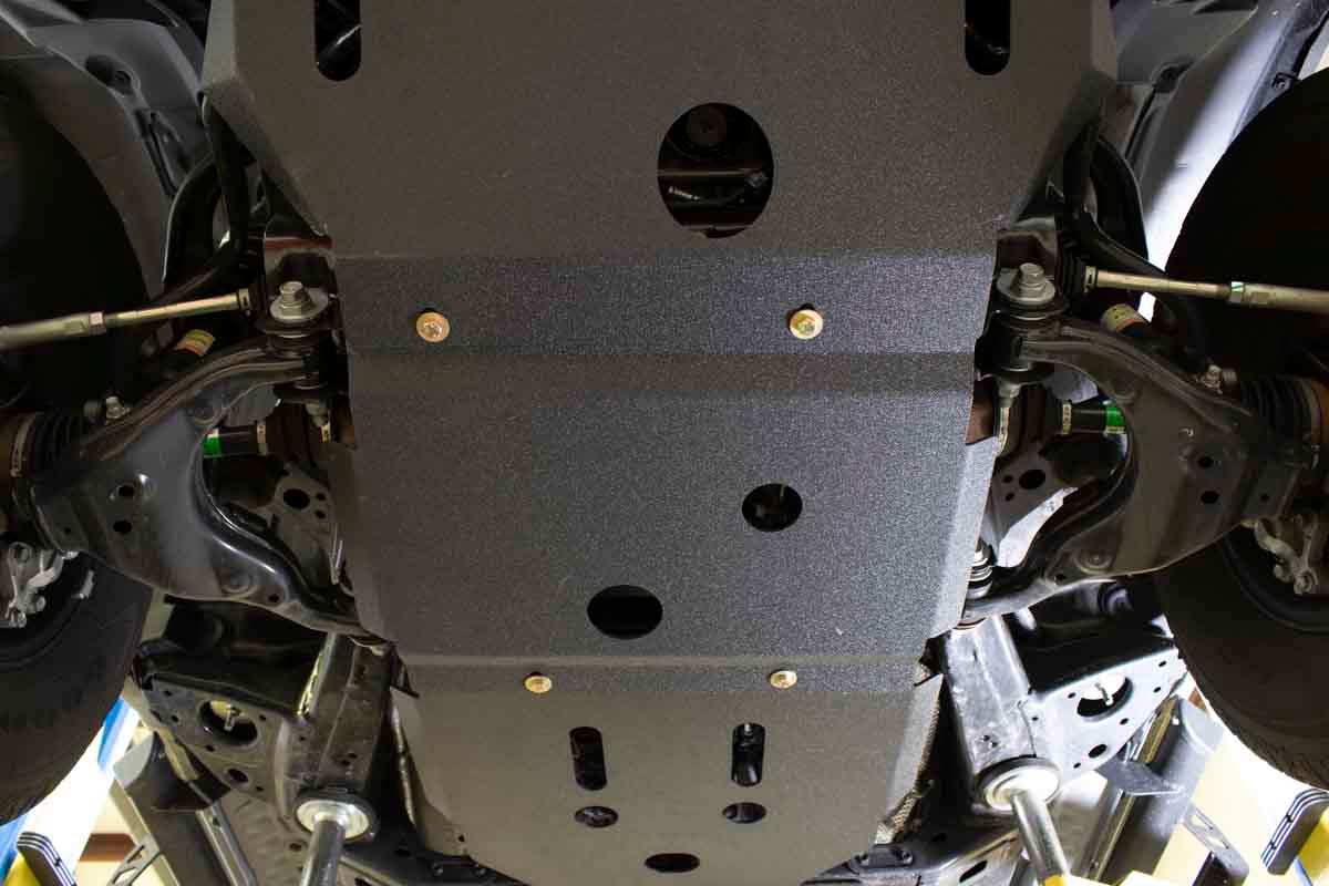 Toss out your tiny, bare minimum factory skid and keep your engine, radiator, transmission & transfer case safe with a Fishbone Offroad Complete Skid. Our Skid Plates are CNC Laser Cut from 3/16 inch Steel and are covered with a textured black powder coat. These bolt on and install quickly so that you can get back on the trail.