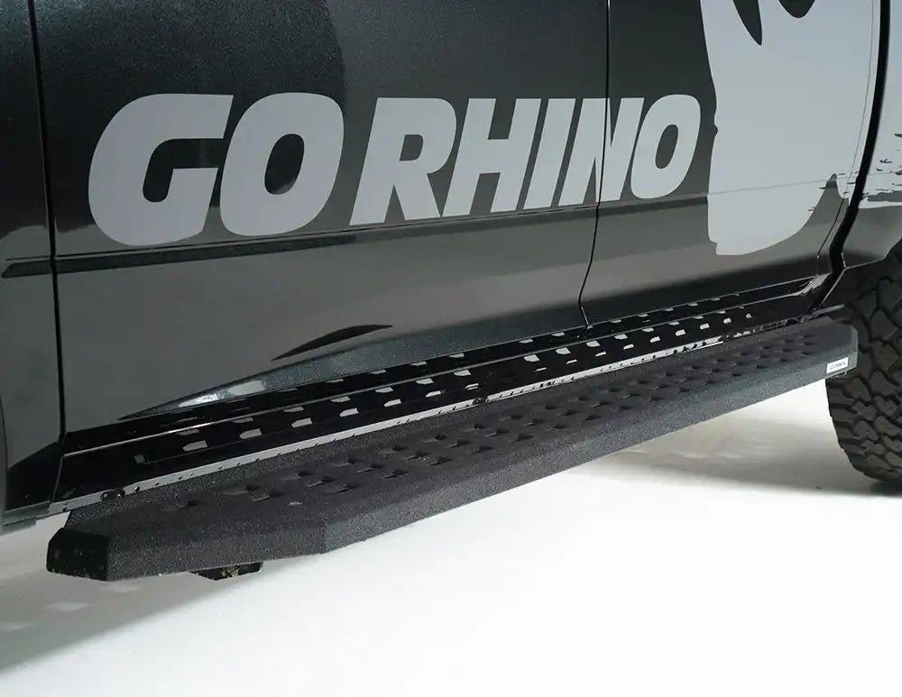 The RB10 Running Boards protect your paint from flying stones and gravel while providing a wide, full-length step platform for easy entry to the front or back doors. These Raptor-style running boards are built from 16-gauge zinc coated steel and sprayed with a durable black texture finish for corrosion, impact & abrasion resistance.