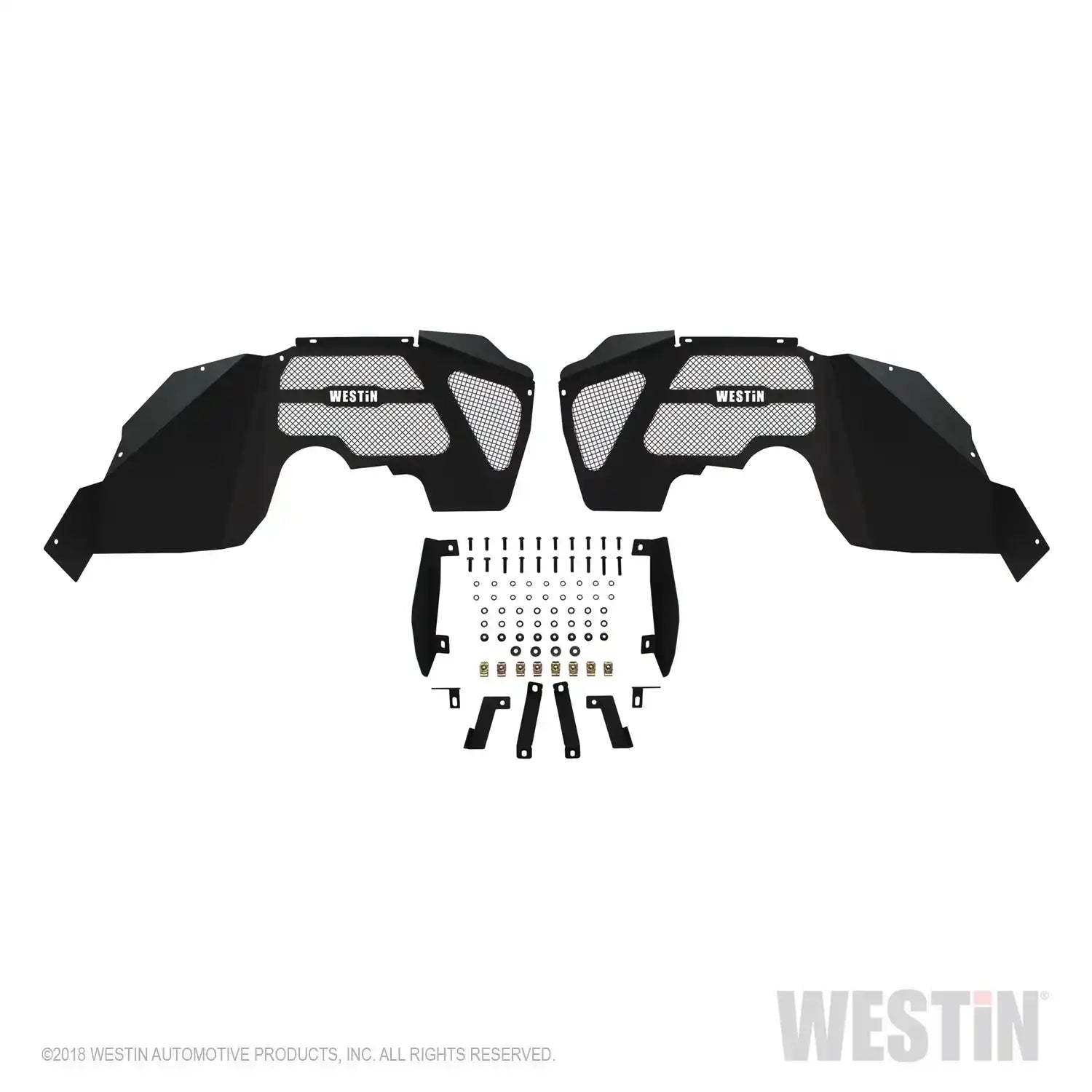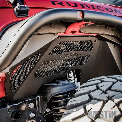 | Description_MKT | Stylish and durable, Westin's Wrangler JK Front Inner Fenders provide engine protection from rocks and debris while improving airflow to the engine compartment. Designed to fit with Westin's Front Tube Fenders and made of 16 gauge steel. Sold in pairs and available in textured black finish backed by a 3 year warranty. Hardware included for easy installation |
