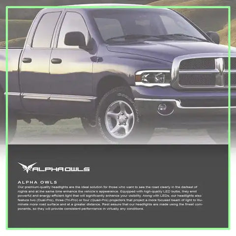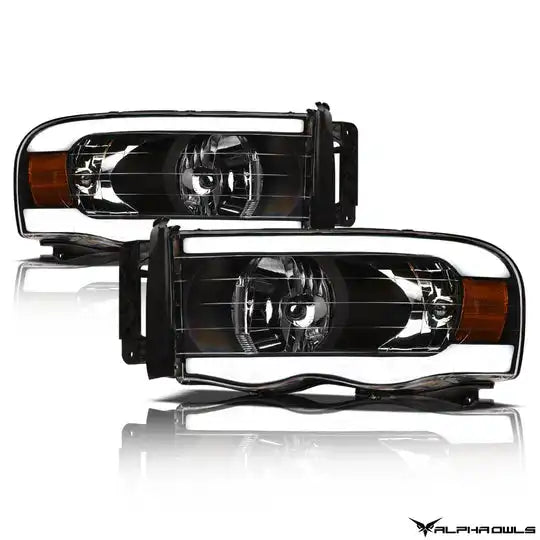 Alpha Owls 2002-2005 Dodge Ram 1500 LM Series Headlights (Crystal Headlights Black housing w/ LumenX Light Bar).