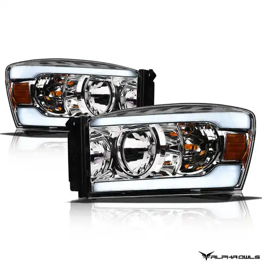 Alpha Owls 2006-2008 Dodge Ram 1500 LM Series Headlights (Crystal Headlights Chrome housing w/ LumenX Light Bar).