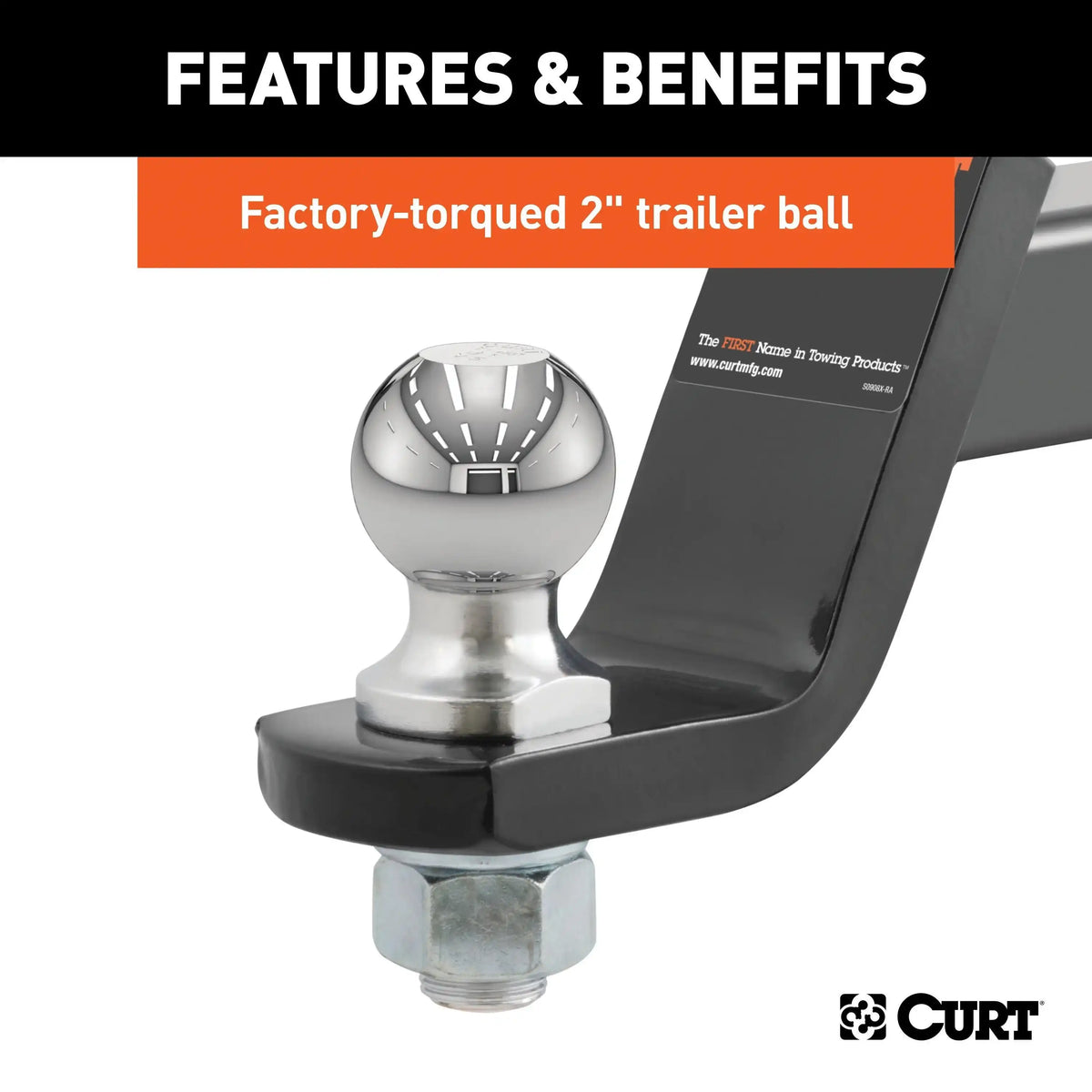 When it comes to ball mounts, a CURT loaded ball mount is the complete package. These stingers come with all necessary towing components and are pre-fitted with a factory-torqued trailer ball, eliminating the need to mount and torque your own trailer ball. This means a loaded ball mount is ready for towing right out of the package! Each one also comes with a pin and clip for mounting the ball mount into the appropriate size receiver tube. CURT offers loaded ball mounts in a variety of styles and weight ratings. This CURT loaded ball mount features a gross trailer weight capacity of 7,500 lbs. and a tongue weight capacity of 750 lbs. It comes with a 2" trailer ball, making it an excellent choice for towing most boat trailers, utility trailers, campers, livestock trailers and recreational vehicle trailers used for hauling dirt bikes, motorcycles and ATVs (NOTE: Never exceed the lowest weight capacity of any towing component; i.e. the vehicle, hitch, trailer, etc). This ball mount also has a length of 8-1/4", a drop of 4" and comes with a gloss black powder coat finish to resist rust, chipping and UV damage. All CURT loaded ball mounts feature 2" x 2" shanks and are made with the same superior quality we put into each of our products.