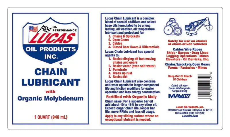 LUCAS OIL 10014 CHAIN LUBRICANT/12X1/QUAR