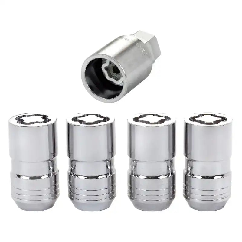 Chrome Cone Seat Wheel Lock Set (M14 x 1.5 Thread Size) - Set of 4 Locks and 1 Key