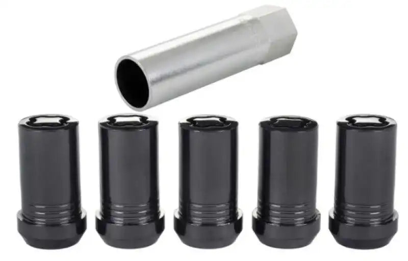 Black Tuner Style Cone Seat Wheel Lock Set (M14 x 1.5 Thread Size) - Set of 5 Locks and 1 Key