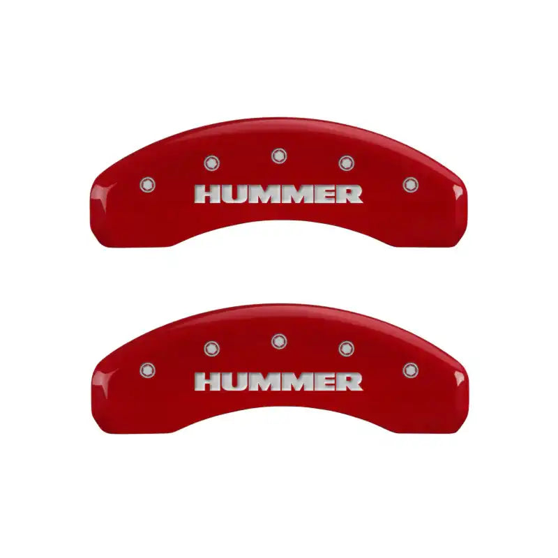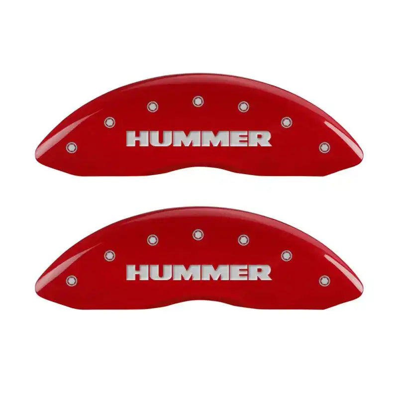 Set of 4 caliper covers, Engraved Front and Rear: Hummer, Red powder coat finish, silver characters.