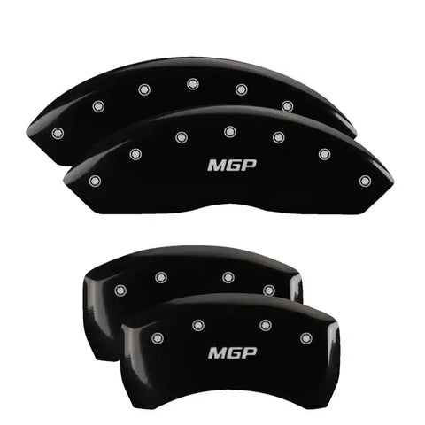 Set of 4 caliper covers, Engraved Front and Rear: MGP, Black powder coat finish, silver characters