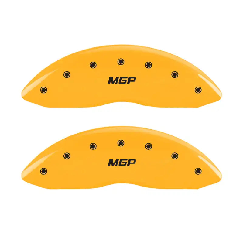 Set of 4 caliper covers, Engraved Front and Rear: MGP, Yellow powder coat finish, black characters