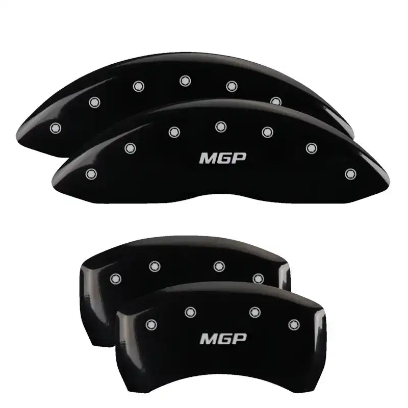 Set of 4 caliper covers, Engraved Front and Rear: MGP, Yellow powder coat finish, black characters.