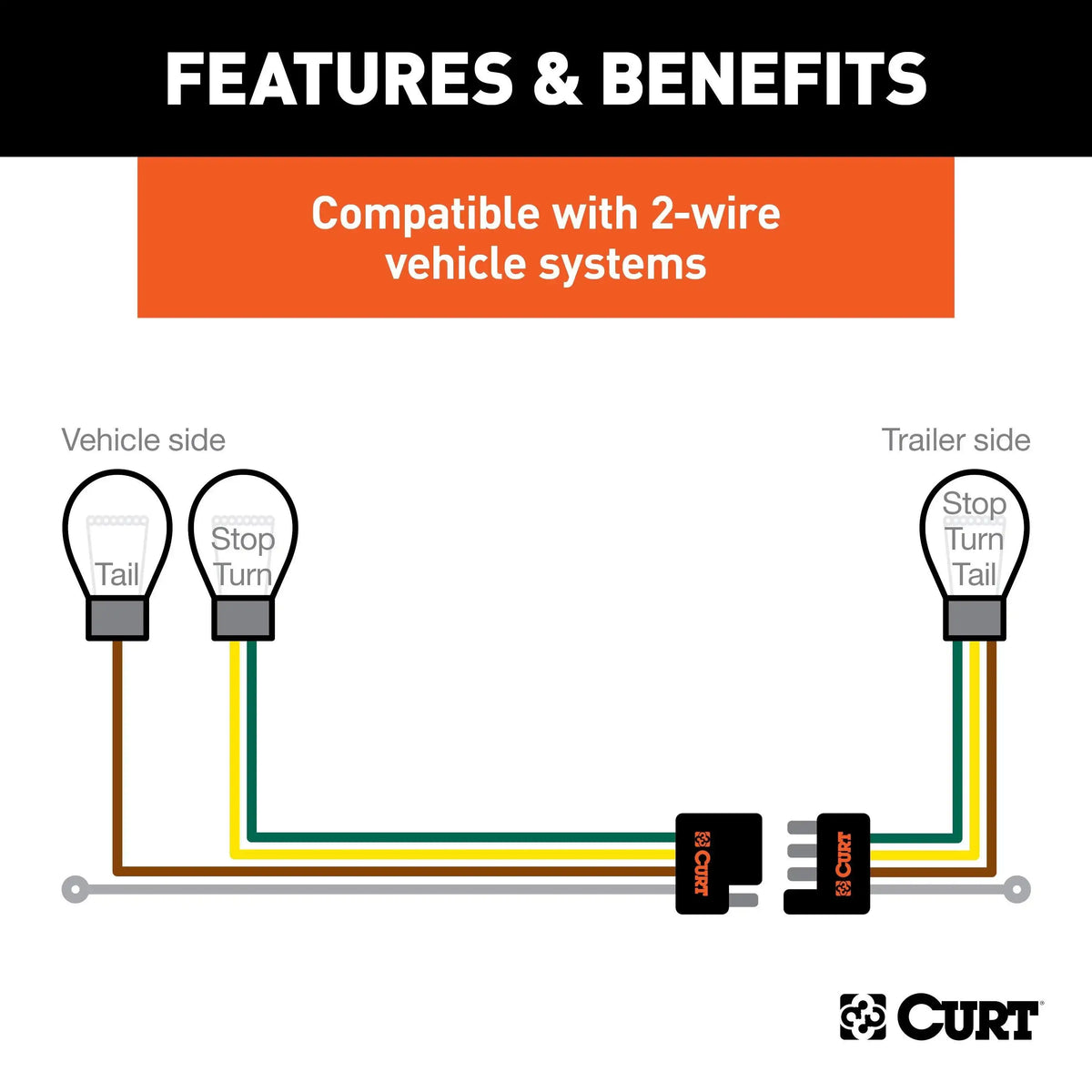 Rain, road grime and salt can deal a vicious blow to your trailer wiring, and it takes electrical components with an extra-thick shell to stand up to the elements. The CURT multi-function electrical converter is an advanced taillight converter that offers the ultimate in vehicle compatibility and weather resistance, giving you a reliable wiring connection any season of the year. The potted design seals the internal electrical components in a watertight enclosure and is filled with a solid compound to protect against impacts, vibrations and moisture for long-lasting use, even on the exterior of the vehicle. The converter also features our advanced surface mount technology (SMT), using smaller components mounted directly to the surface of the circuit board. This produces lower resistance, reduced heat generation, longer life cycles and higher reliability. The CURT multi-function electrical converter comes with pigtail wires that are able to be spliced into two-wire, three-wire or PWM wiring system with combined stop and taillights. It converts any of these systems to a simple two-wire system, using a standard 4-way flat output, to be compatible with most trailer wiring. The converter is controlled using a microprocessor that is able to sense the current passing through it, allowing for quick reaction to dangerous conditions such as overload and short circuits. It also filters unwanted input signals to protect your wiring systems and uses a mere seven volts for low-voltage operation. The CURT multi-function taillight converter is a heavy-duty electrical converter for virtually any vehicle-trailer combination. It comes with color-coded wires and an easy-to-read wiring guide, as well as a dust cover to protect the 4-way flat connector. This package includes a powered converter wiring kit #55152 and four snap locks for faster, more secure splicing.