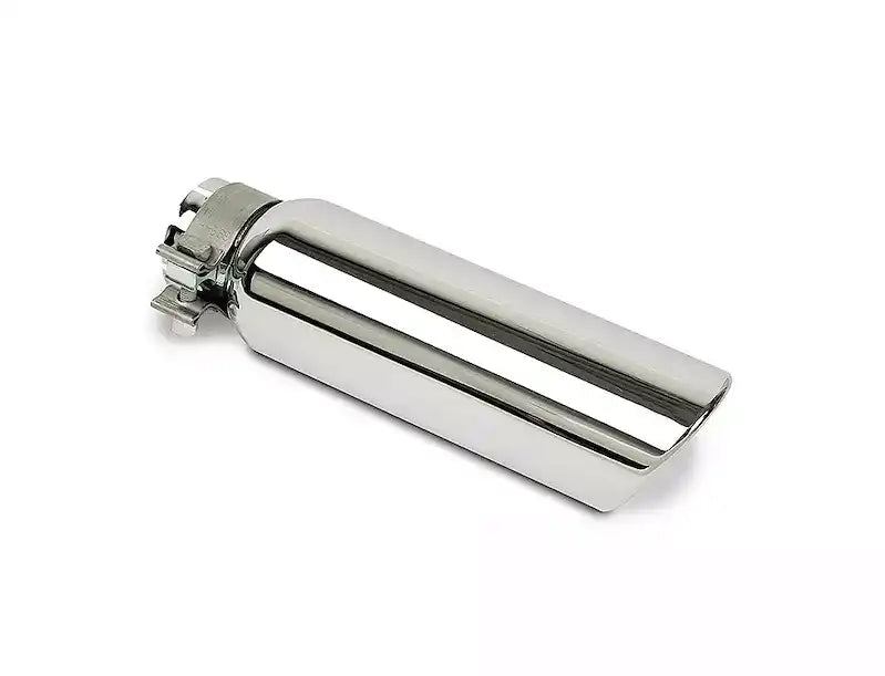 Exhaust Tail Pipe Tip; 2-3/4 Inch Inside Diameter; 4 Inch Outside Diameter; Chrome Plated Stainless Steel; Round; Angle Cut; Rolled Edge; 10 Inch Length