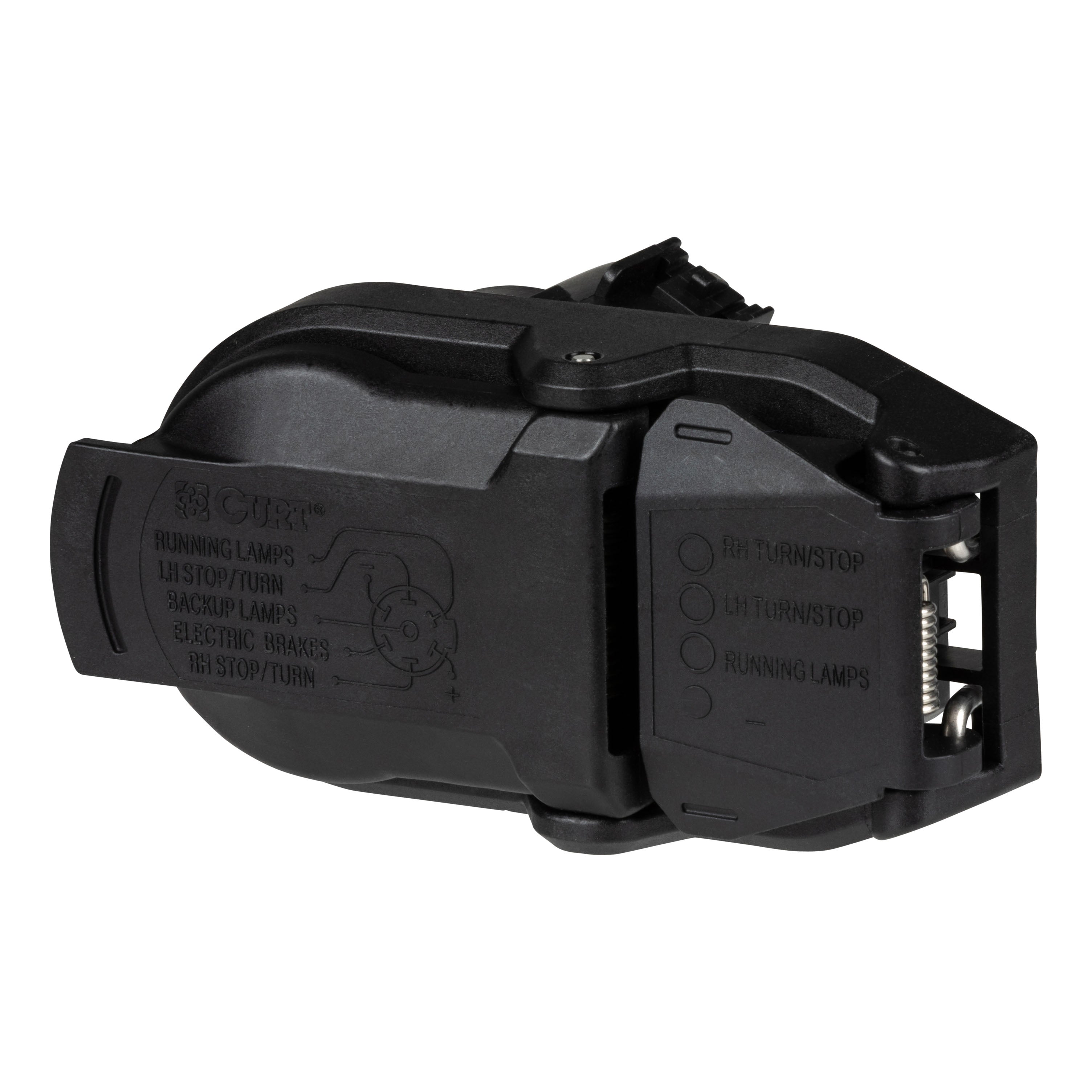 CURT electrical connectors are designed to give you a reliable connection every time you plug in your trailer. This dual-output connector is designed to be a perfect OEM replacement, plugging into a USCAR socket and supplying power for tail lights, turn signals, electric trailer brakes, a 12-volt battery, reverse lights and brake lights, as well as a ground connection. It is intended to be a replacement trailer connector, plugging into a standard USCAR socket and providing a 4-way flat and 7-way RV blade socket (see application info to verify fitment with your vehicle). It features rust-free black plastic construction and comes with spring-loaded covers to keep out dust and water.