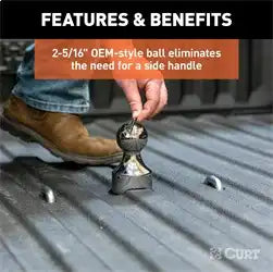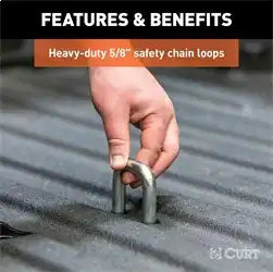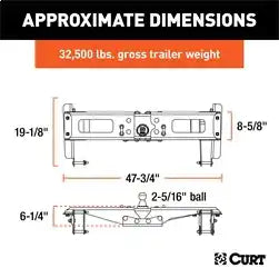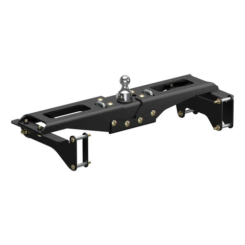 Ingenious design and reliability -- these words don't just describe the Chevrolet Silverado and GMC Sierra 2500 HD and 3500 HD; they were the inspiration for the CURT OEM-style gooseneck hitch for GM. This hitch is built to excel in two key things: ease of installation that comes from an ingenious design and safe, reliable towing even with heavy-duty gooseneck trailers. The Chevy / GMC-compatible gooseneck hitch boasts a one-person installation. It is built with fewer pieces than competitor hitches to keep installation simple, and the pieces are designed to be compact so they can be lifted and bolted into place without the help of a second person. We've also eliminated a number of steps from the process to speed up installation time and reduce the number of modifications needed on the vehicle. The hitch does not require the exhaust or spare tire to be lowered. It requires no welding, temporary truck bed removal or even bed flange trimming. Best of all, pre-existing factory holes are used to mount the hitch to the truck's frame, meaning the only drilling necessary is for the gooseneck ball hole and safety chains in the truck bed. Once installed, the OEM-style gooseneck hitch for Chevrolet / GMC offers simple operation and highly secure towing. It is tested in accordance with SAE J2638 to safely tow up to 32,500 lbs. GTW. Instead of a side handle mounted under the wheel well, it uses a latch-locking trailer ball. This patented 2-5/16" ball easily drops into the gooseneck head from above the truck bed and is secured in place with a simple quarter-turn of the latch. This Chevrolet Silverado / GMC Sierra 2500 HD and 3500 HD gooseneck hitch also features heavy-duty 5/8" safety chain anchors for dependable security for your trailer, whether you're towing livestock, machinery or construction materials. To ensure maximum quality, the CURT OEM-style gooseneck hitch for GMC and Chevrolet comes with a tough A-coat finish to easily resist rust and scratches.