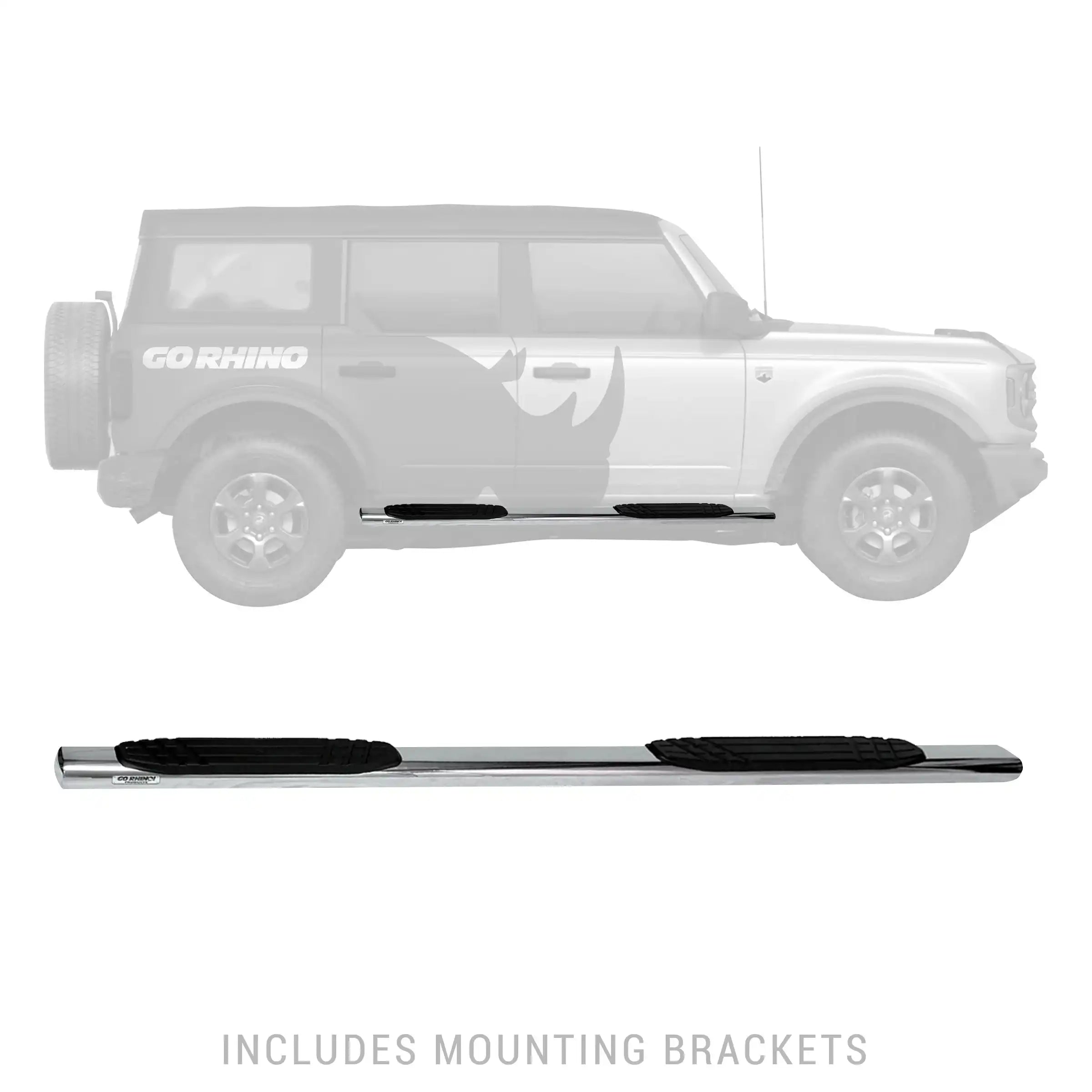| Description_MKT | Go Rhino's 4" OE Xtreme Side Steps offer original equipment styling at an affordable price. Complete kit with bars and mounting brackets. Limited Lifetime warranty on materials, construction and Finish. |