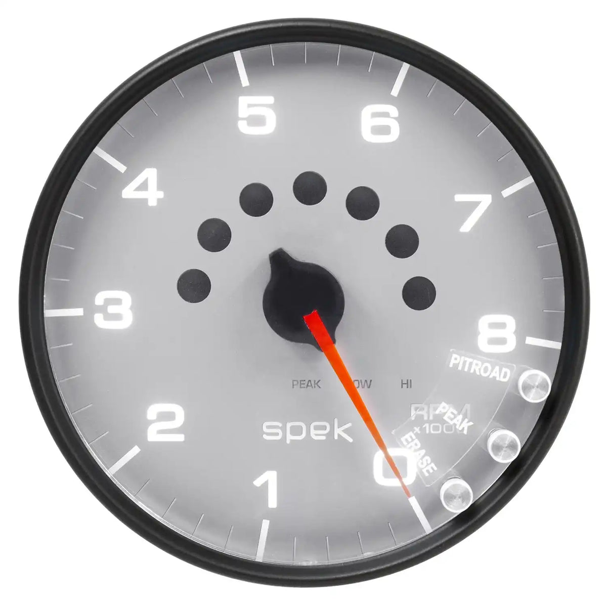 | Description_DES | GAUGE, TACHOMETER, 5", 8K RPM, W/SHIFT LIGHT & PEAK MEM, SILVER/BLACK, SPEK-PRO |