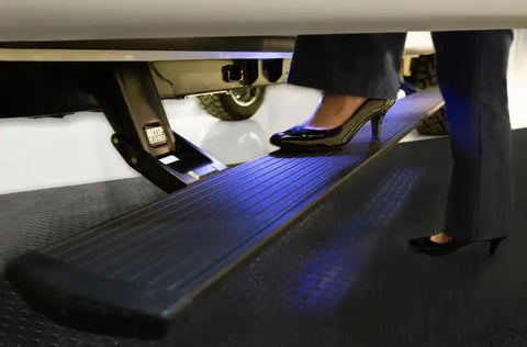 AMP Research invented the PowerStep ™, the automatic, electric-powered running board that instantly extends when you open your door, and retracts out of sight when the doors close for improved ground clearance, aerodynamics and appearance. Its sleek design, all-weather performance and legendary reliability set the industry standard. PowerStep ™ has die-cast aluminum alloy components and precision stainless steel pivot pins for rock-solid stability. The original PowerStep ™ is American designed and engineered. Features all hardware necessary for installation. Product comes with easy to understand vehicle specific installation instructions. Be sure to read and precisely follow the provided instructions when installing PowerStep ™ Power Running Boards.