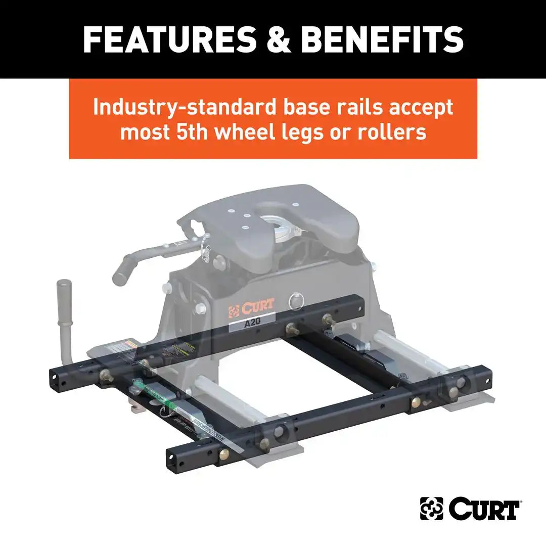 CURT 16027 Puck System 5th Wheel Adapter with Rails, Select Chevy, Ford, GMC, 25K