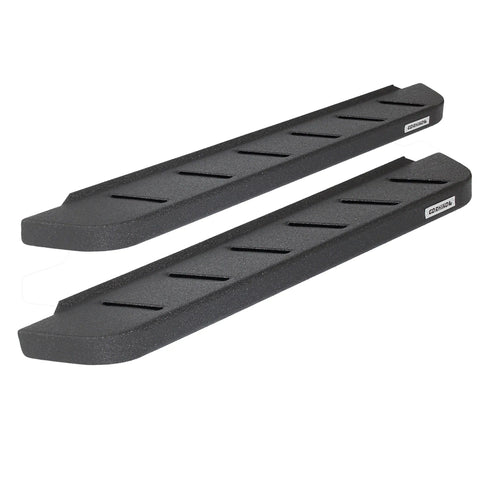 The legendary RB Series of cab length running boards from Go Rhino will make your truck, Jeep or SUV stand apart from the crowd. With an aggressive, yet stylish appearance, these bolt-on side steps take their visual inspiration from the Ford Raptor but are made for more than just looks. The RB10 running boards features a generous step area with Raptor-style louvers for maximum traction when entering and exiting your vehicle. The corrosion-resistant 16-gauge zinc coated steel steps are mounted high and tight, giving them plenty of clearance for off-road adventures, and are strong enough to support hundreds of pounds of weight. The welded, boxed end design is offered in two finishes: textured black powder coat or rugged, bedliner coating. RB10 Running Boards come with a Limited Lifetime warranty on materials and construction and a 5 year warranty on the Textured Black Finish.