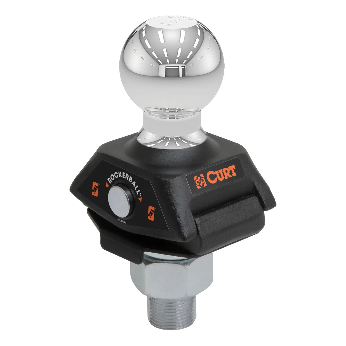 The CURT RockerBall trailer ball is a cushion hitch ball that dynamically absorbs jerking and jarring from your trailer at the coupling point. Just bolt it onto your existing trailer hitch ball mount to enjoy increased comfort, enhanced control and extended longevity of your vehicle's systems. The RockerBall tow ball is engineered with ShockDrop technology: a cushion isolator that reduces noise, vibrations and chucking at the coupling point. This produces quieter towing, increased driver control over the trailer and reduced strain on the vehicle's brakes, towing system and suspension, compared to a conventional metal-on-metal towing connection. The RockerBall fits onto a variety of standard ball mounts -- virtually any ball mount with a 2-1/2-inch wide trailer ball tongue and 1-inch diameter ball hole. RockerBall is also virtually maintenance-free. Unlike other cushion hitch and torsion hitch options, it has no airbags or bearings to service. Just apply grease to the zerk fitting as needed for continuous lubrication and smooth towing. The RockerBall trailer ball is constructed from forged steel for exceptional strength, and it comes with a powder coat finish and chrome plating for dependable corrosion resistance.