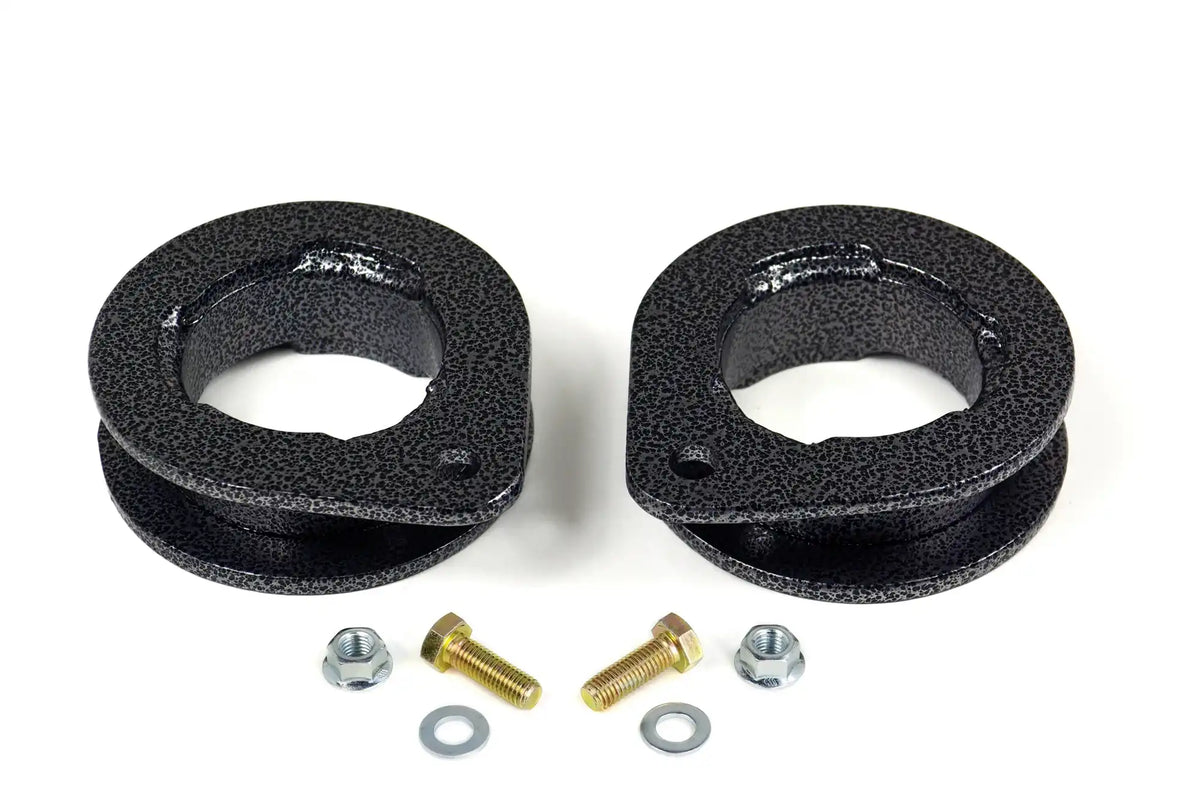 | Description_MKT | Rugged Off Road heavy duty 1.5'' steel coil spring spacer leveling kit made to fit 2007-2017 Jeep JK Wrangler vehicles.The JK Wrangler comes with a very nose down rake. Our new 1.5'' front leveling kit is designed to give Jeep owners some flexibility to how much they want to lift the front of the Jeep. 1.5'' of front lift allows you to install up to 33'' off road tires. This is the ideal lift solution if you've installed a heavy trail bumper or winch set up which causes the factory front suspension to sag. Install our leveling kit and make the sag go away! This premium lift innovation is manufactured with laser cut high quality steel and features a rugged and durable hammertone powdercoated finish. Includes all required hardware. Easy Installation. The best priced Jeep leveling kit you will find anywhere! |