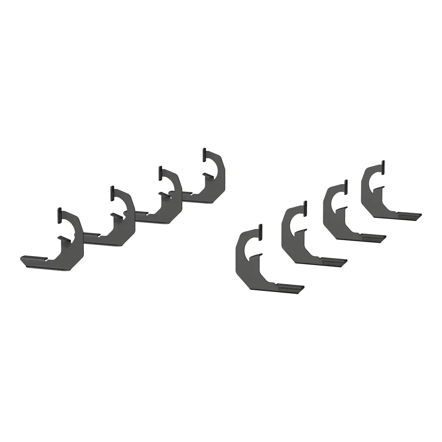 While many side accessories feature a universal track mounting system for easier installation and inventory requirements, the ARIES VersaTrac mounting system takes things a step further. VersaTrac uses a single set of vehicle-specific brackets to accommodate different side accessory options. This not only means different finish options but also different products entirely. With the brackets installed, any side bar or running board equipped with the VersaTrac mounting system can be attached or swapped out whenever desired. The VersaTrac mounting system saves you time and money. It eliminates the need to purchase and install an entirely new set of mounting brackets with each new side accessory. The mounting brackets are available for purchase as a stand-alone item or as part of a complete kit with compatible side bars and running boards. Use the application information to determine which part numbers will fit your vehicle.