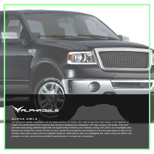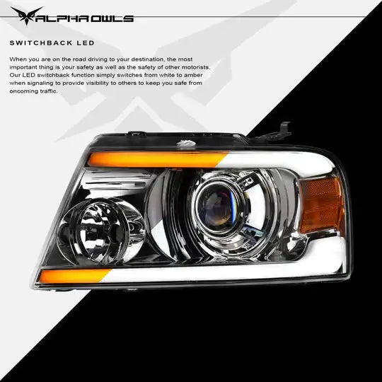 Alpha Owls 2004-2008 Ford F-150 SQP Series Projector Headlights (Halogen Projector Chrome housing w/ Sequential Signal/LumenX Light Bar).