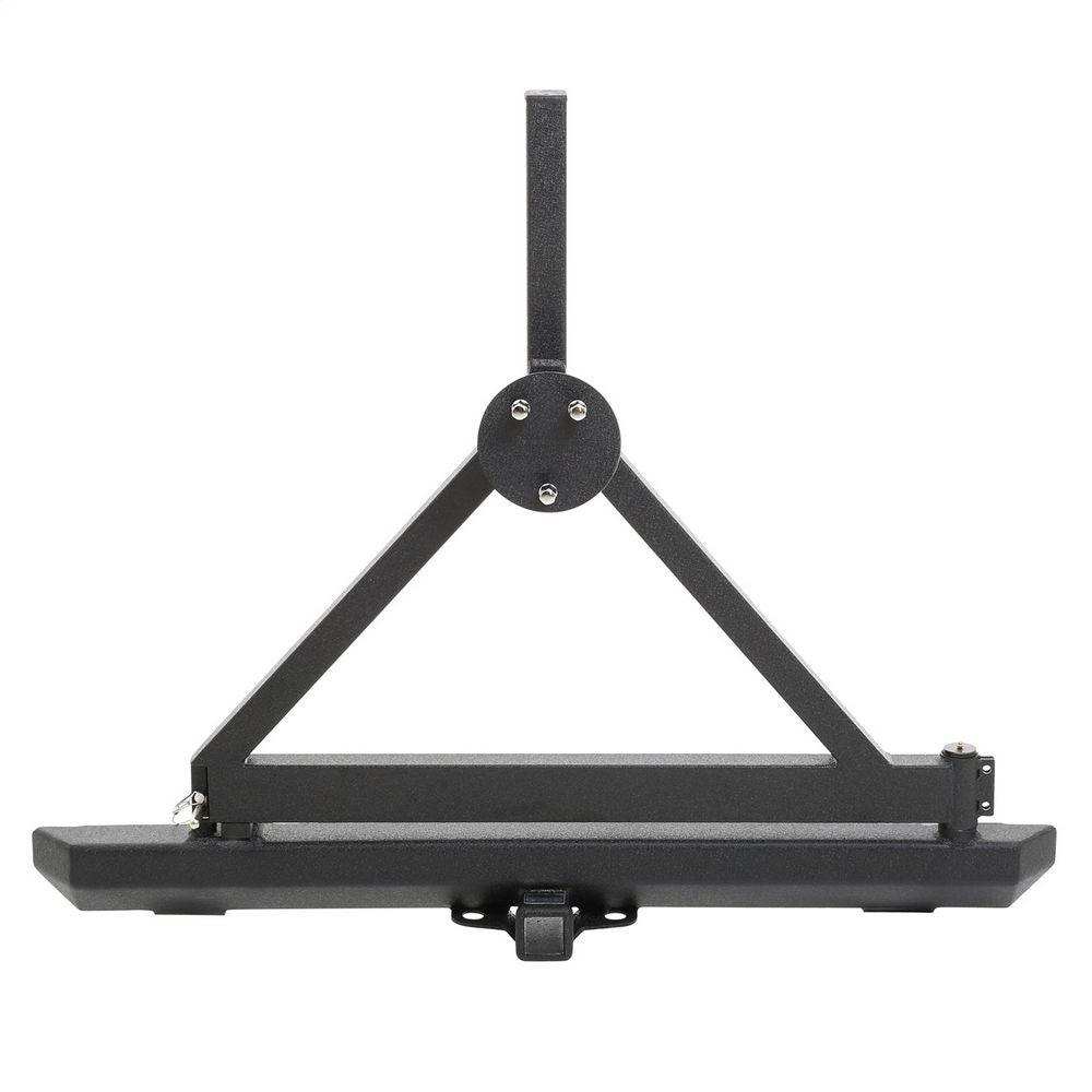 The Perfect Add-On To Your Jeepâ® When You Have Oversized Tires. Original Jeepâ® Tailgates Are Unable To Support The Weight Of An Oversized Tire- Especially When You Are Off Road. This Bumper Mount Tire Carrier Takes The Load Off The Tailgate And Puts It On The Frame Mounted Bumper. Each Tire Carrier Incorporates Grease Fitting To Keep The Hinge Mechanism Running Smooth. Constructed Of The Finest Materials And Zinc Under-Coated, Dual Stage Durable Powder Coat Painted, This Heavy Duty Off Road Design Is Built To Last. Available In Textured Black Only.