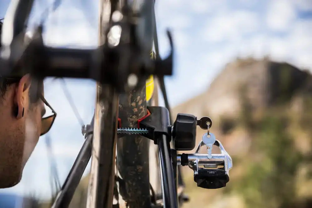 The Swagman UPRIGHT ROOF RACK is an affordable and secure roof bike rack. It carries one bike on the roof of your vehicle and doesn’t require you to take off the bike’s wheels. It’s very easy to install, fitting most types of roof rack crossbars including square, round, and oval roof rack crossbars up to 3”. The UPRIGHT ROOF RACK secures your bike with straps on each wheel and an arm that clamps around the downtube. The clamp can be locked. It fits bikes with tires up to 2.5” wide, with a weight limit of 35lbs.