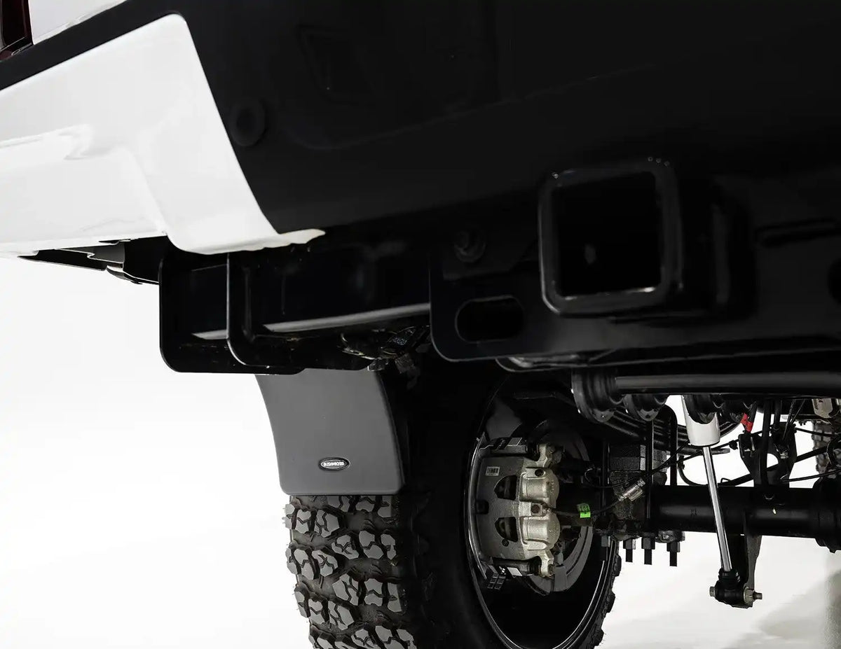Bushwacker , the off-road icon and originator of the bolt-on fender flare, introduces an innovative new patent pending Trail Armor Mud Flap. The new Trail Armor Mud Flap is the perfect fit for the Pocket Style Flare and gives you the comfort and protection you need for whatever the road throws at you. The ABS construction provides flexible protection that attaches to the flare. The perfect complement for the Pocket Style flare this one-of-a-kind look combines to give you protection on and off road with easy installation. The Trail Armor Mud Flaps provide an additional 10" of drop and 10" of width in tire coverage. The Trail Armor Mud Flaps are sold in pairs and are launching for all current model truck applications. As with all Bushwacker products, these are backed by an industry leading warranty with the quality you expect from the originator of the Fender Flare.