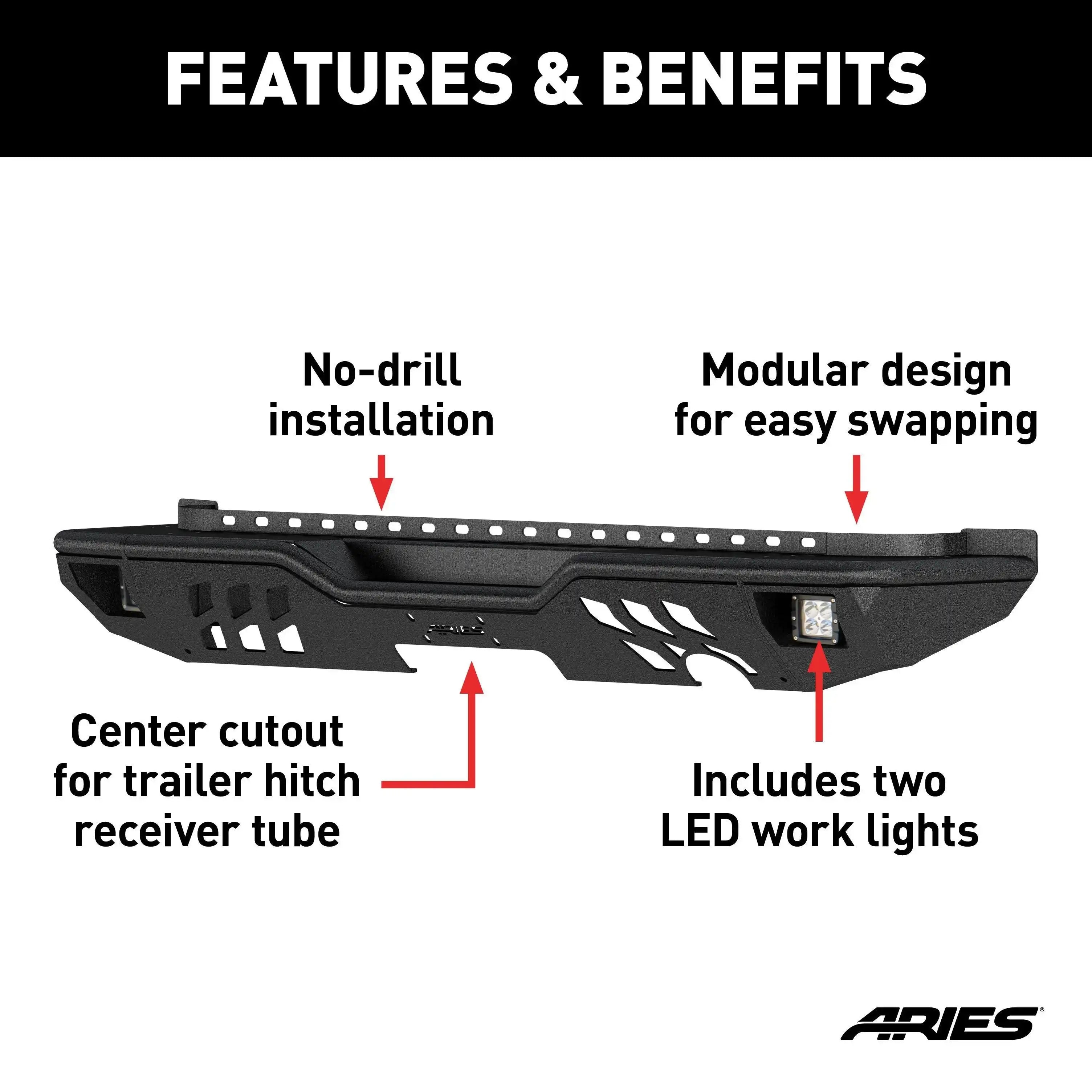ARIES 2082061 - TrailChaser Jeep Wrangler JK Aluminum Rear Bumper with LED Lights