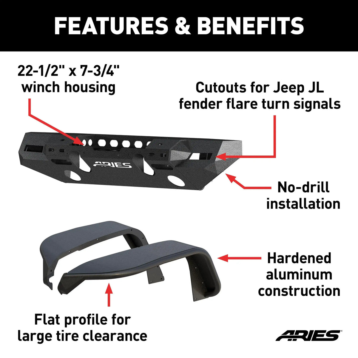 ARIES 2082073 - TrailChaser Jeep Wrangler JL Front Bumper with Fender Flares (Option 7)