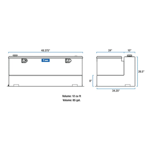UWS TT-85-COMBO-BLK - Gloss Black 85-Gallon Combo Aluminum Transfer Tank