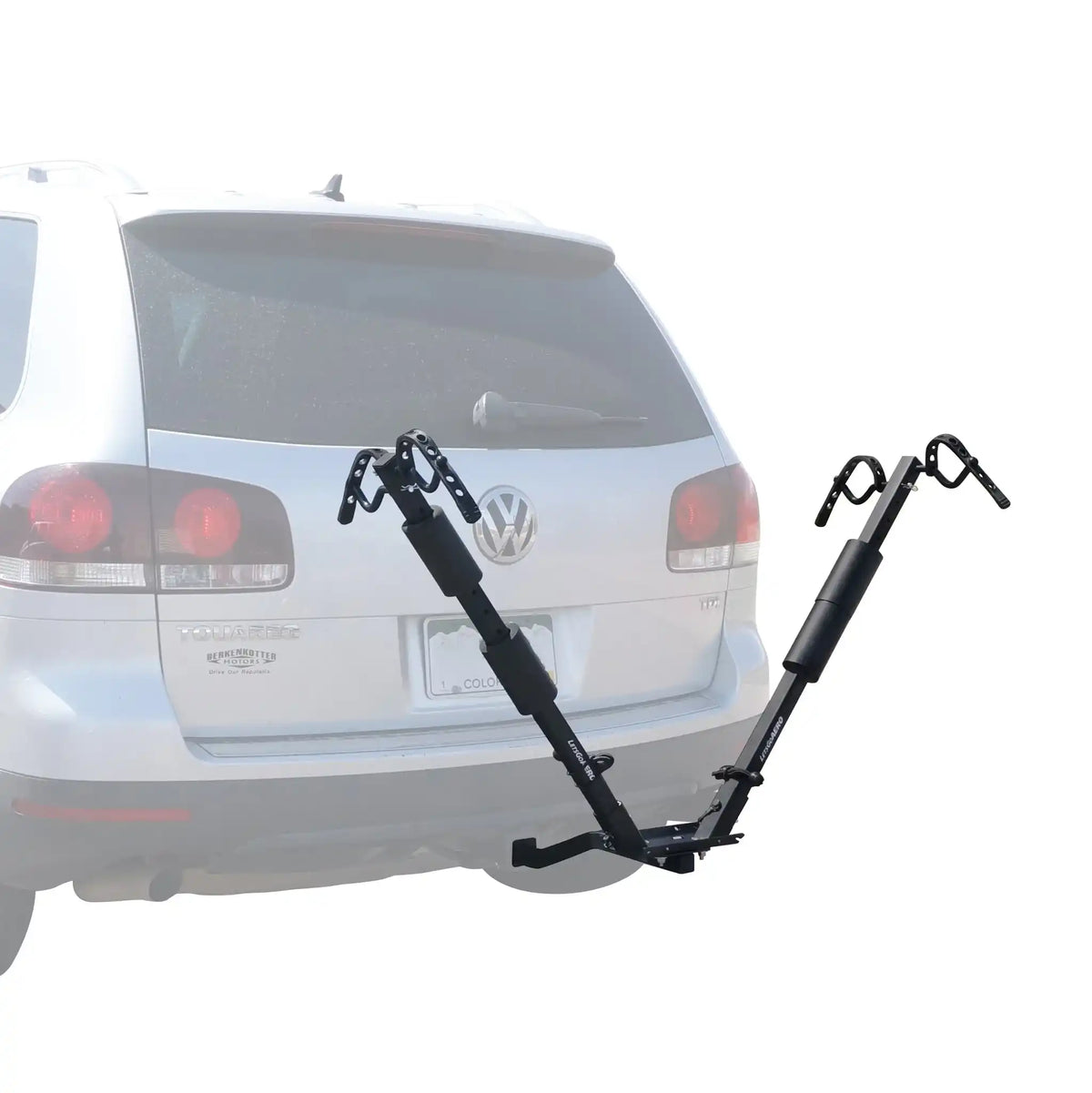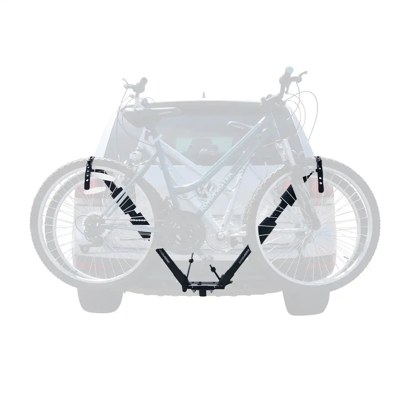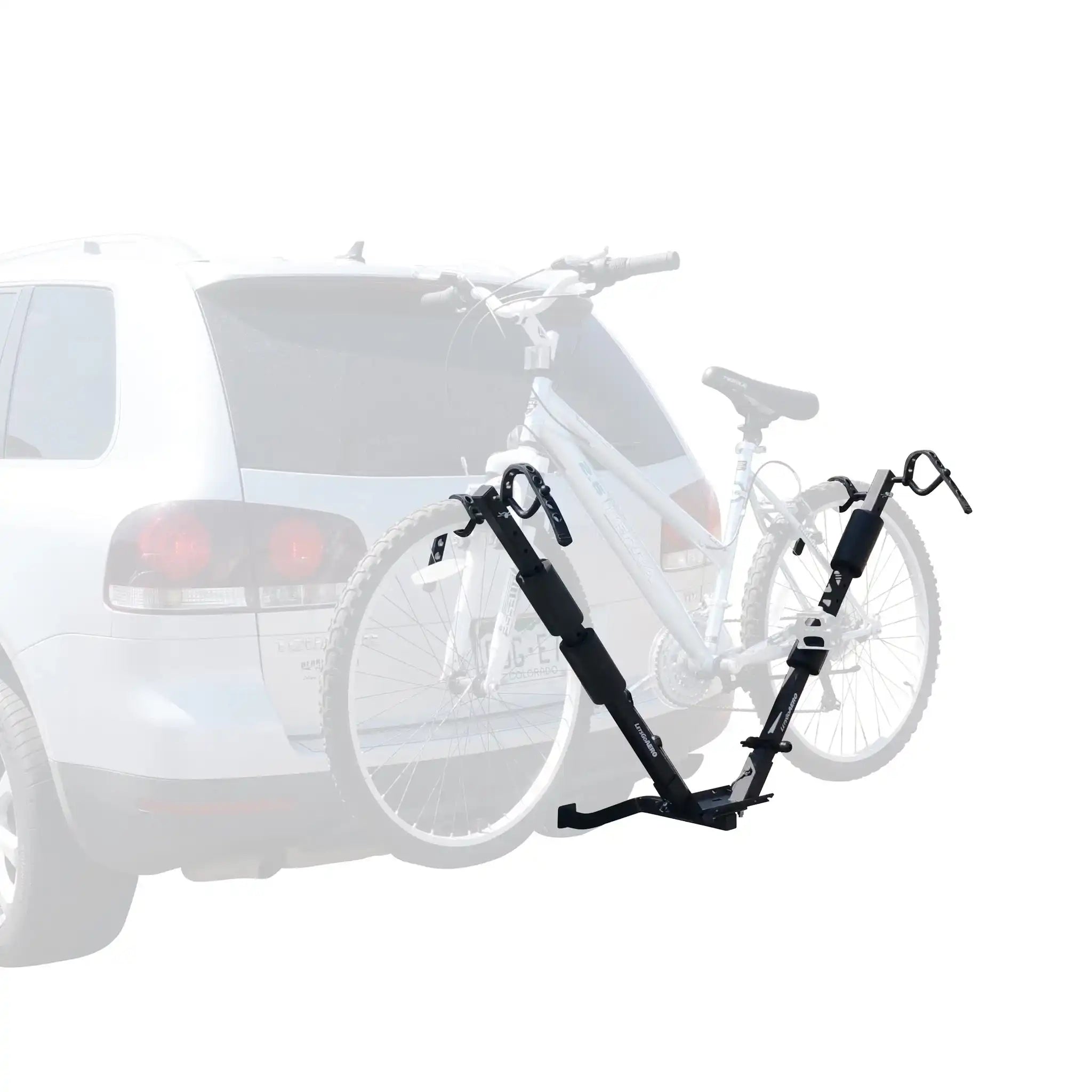 The BikeWing-V2 Two Bike V-Rack offers universal bicycle fit with a modular design to compliment the on-the-go lifestyle. The V-Wings carry two bikes of all sizes and frames suspended by the wheels and fits 1.25in and 2in hitch receivers.