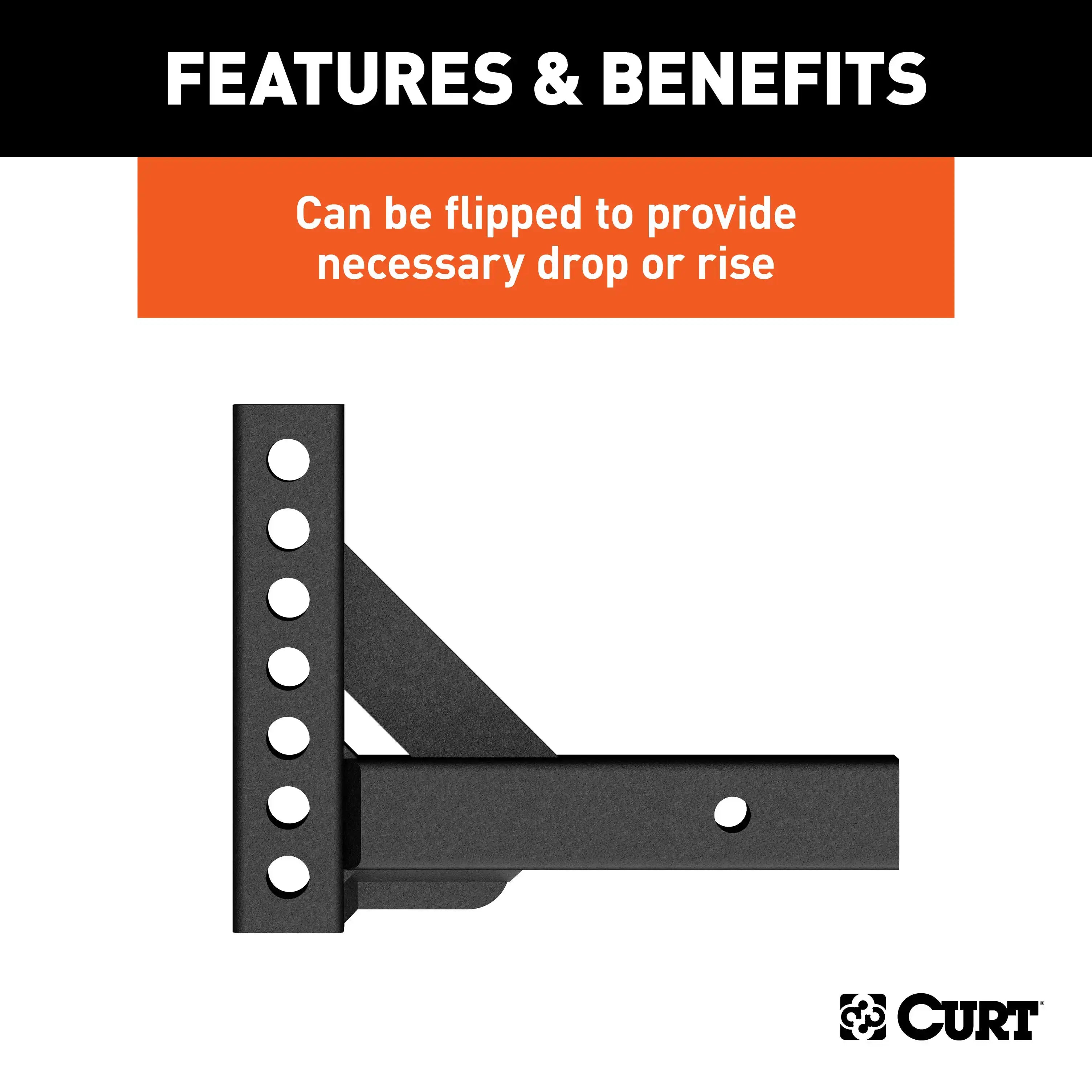 When it comes to enjoying your passion, we think towing equipment should never be the limiting factor. This CURT weight distribution replacement shank is designed for heavy-duty towing, versatile adjustment of your weight distribution hitch and long-lasting reliability. Made from high-strength steel and tested for safety, this WD replacement shank is perfect for a variety of tough jobs and long journeys. It is compatible with all CURT weight distribution hitches and has a 2" shank with a 5/8" hitch pin hole to fit any 2" x 2" receiver tube opening with a 5/8" hitch pin hole, including most CURT class 3, class 4 and Xtra Duty class 5 trailer hitches. While the receiver tube shank measures 2" x 2", the vertical shank offers a universal fit to be compatible with all CURT weight distribution hitches. Holes in the vertical shank are spaced 1-1/4" center-to-center and have a 3/4" diameter, allowing for flexible adjustment of the WD head for precise leveling of the vehicle-trailer combination. This weight distribution shank can be positioned in the rise position for a maximum rise of 6" or flipped into the drop position for a maximum drop of 2". To ensure durability and long-lasting use, CURT weight distribution replacement shanks are constructed from solid steel and shielded with a highly durable carbide black powder coat finish. This protects them from rain, snow, dirt, road salt and much more for lasting corrosion resistance.