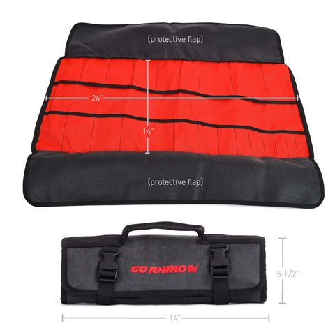 | Description_MKT | Go Rhino’s Xventure line of soft-shell tool rolls combines new age materials with artisan craftsmanship to provide a stylish solution for your tool storage needs. The handcrafted, heirloom quality rolls are lightweight, yet tough enough to protect your tools for a lifetime. The water-resistant waxed canvas rolls feature double wall construction and a black, custom dyed surface that is easy to clean and ages with a unique, attractive patina. The interior is a heavy-duty poly material that is bright red, which makes it easy to identify your tools, with has sewn slots in a variety of widths. Xventure Tool Rolls are available in a variety of sizes and come with a limited lifetime warranty. |